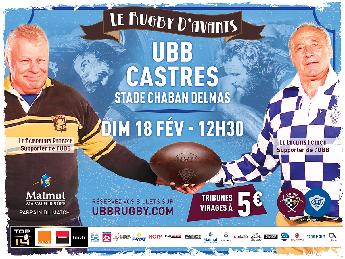 Dimanche 18 février à 12h30, au coeur des vacances scolaires d'hiver, Chaban prolongera l'atmosphère des marchés bordelais, accueillera les fêtards noctambules encore groggy de la veille comme les nombreuses familles venus en promenade dominicale. Une ambiance unique dans les travées de notre stade mythique ! La saison passée, le même UBB - Castres avait réuni un dimanche midi près de 22 000 supporters venus assister à la victoire girondine. Le record sera-t-il battu cette saison ?