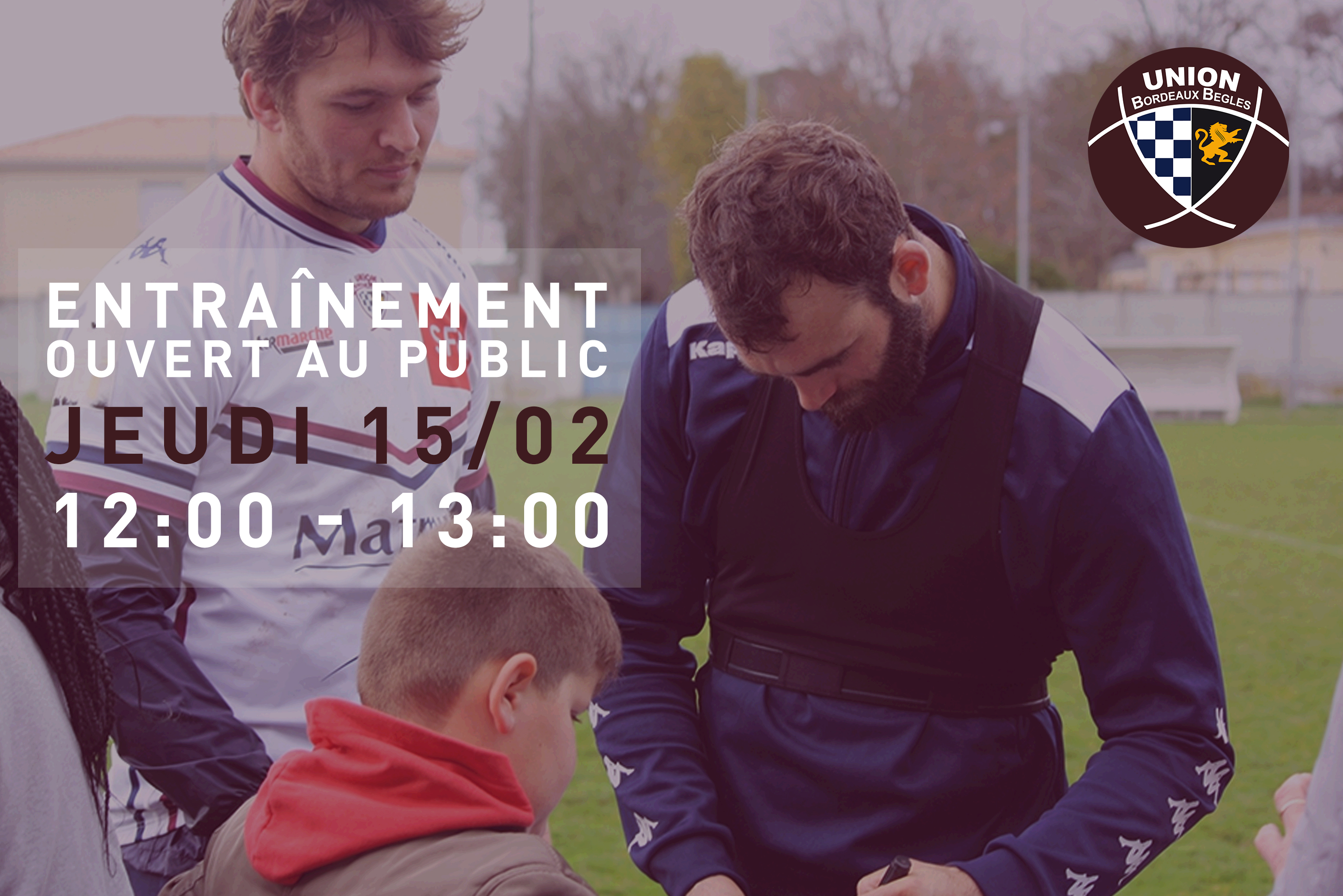 En cette semaine de préparation avant la réception de Castres, dimanche, l’entraînement de ce jeudi 15 février sera ouvert au public, de 12h à 13h au stade André Moga.