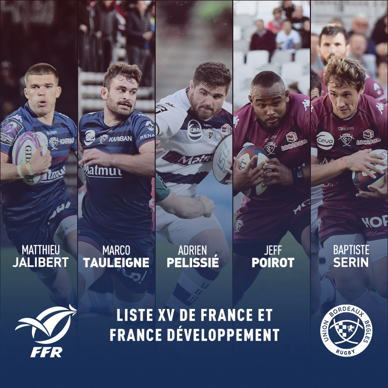 Nous retrouvons donc Jeff Poirot et Adrien Pelissié dans la liste "XV de France". Matthieu Jalibert, Baptiste Serin et Marco Tauleigne feront eux partie de la liste "France Développement". Bravo à eux !