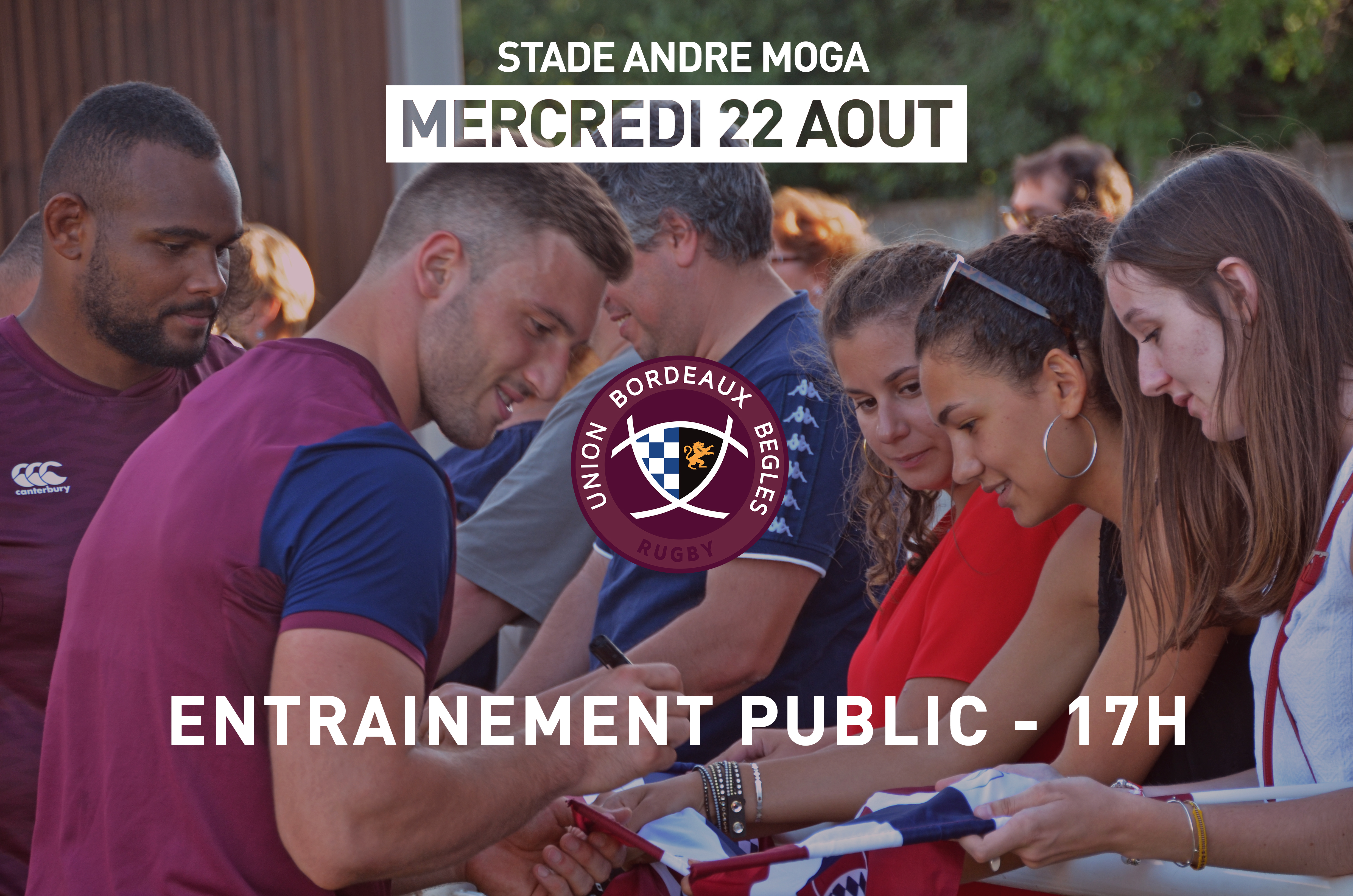 Mercredi 22 août, les joueurs vous attendent de 17h à 17h30 pour les encourager à la fin de leur journée d'entraînement, avant l'ouverture de la saison samedi à Chaban face à la Section Paloise.