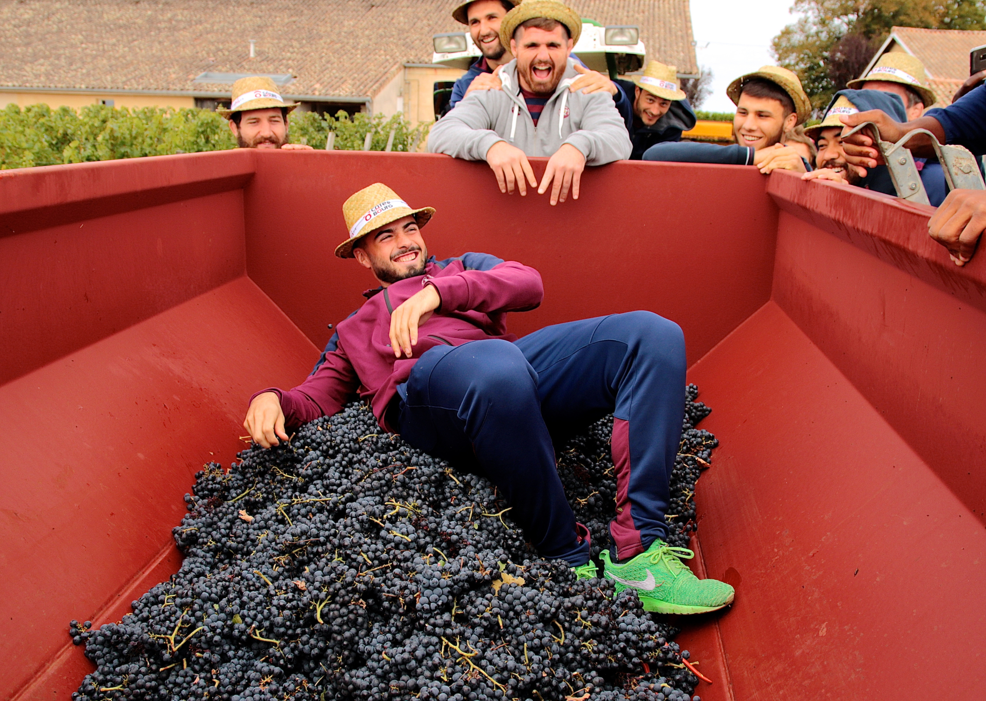 Ce lundi, au surlendemain de leur victoire face à La Rochelle, joueurs et staff de l'UBB ont été conviés dans les Côtes de Bourg pour participer aux traditionnelles vendanges automnales.