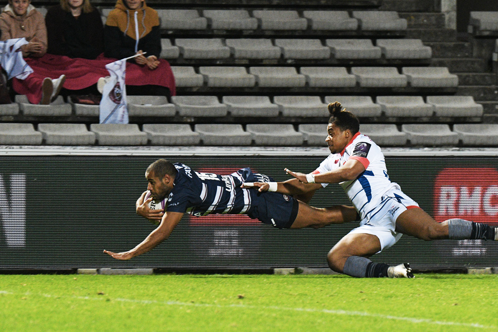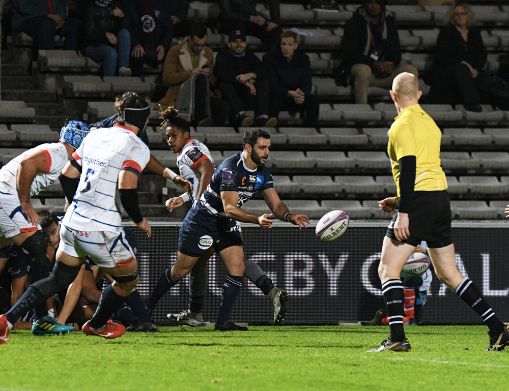La jeunesse et la fougue girondines n’ont pu venir à bout d'un collectif des Sharks bien rôdé ce soir, particulièrement en infériorité numérique dès la première période à cause d’une trop grande indiscipline. On retiendra l’essai de Darly Domvo pour son retour à Caban ! Merci aux courageux supporters venus braver la pluie et les difficultés d’accès liées aux manifestations. Notez bien le prochain rendez-vous à Chaban, nous fêterons les Boxing Days du Top 14 dimanche 30 décembre à 18h avec la réception du Racing 92… Allez l’Union !