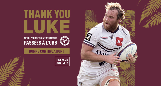 Souhaitant rentrer en Nouvelle Zélande pour raisons familiales, le 3ème ligne néo-zélandais Luke Braid vient d'être libéré de l'UBB à sa demande.