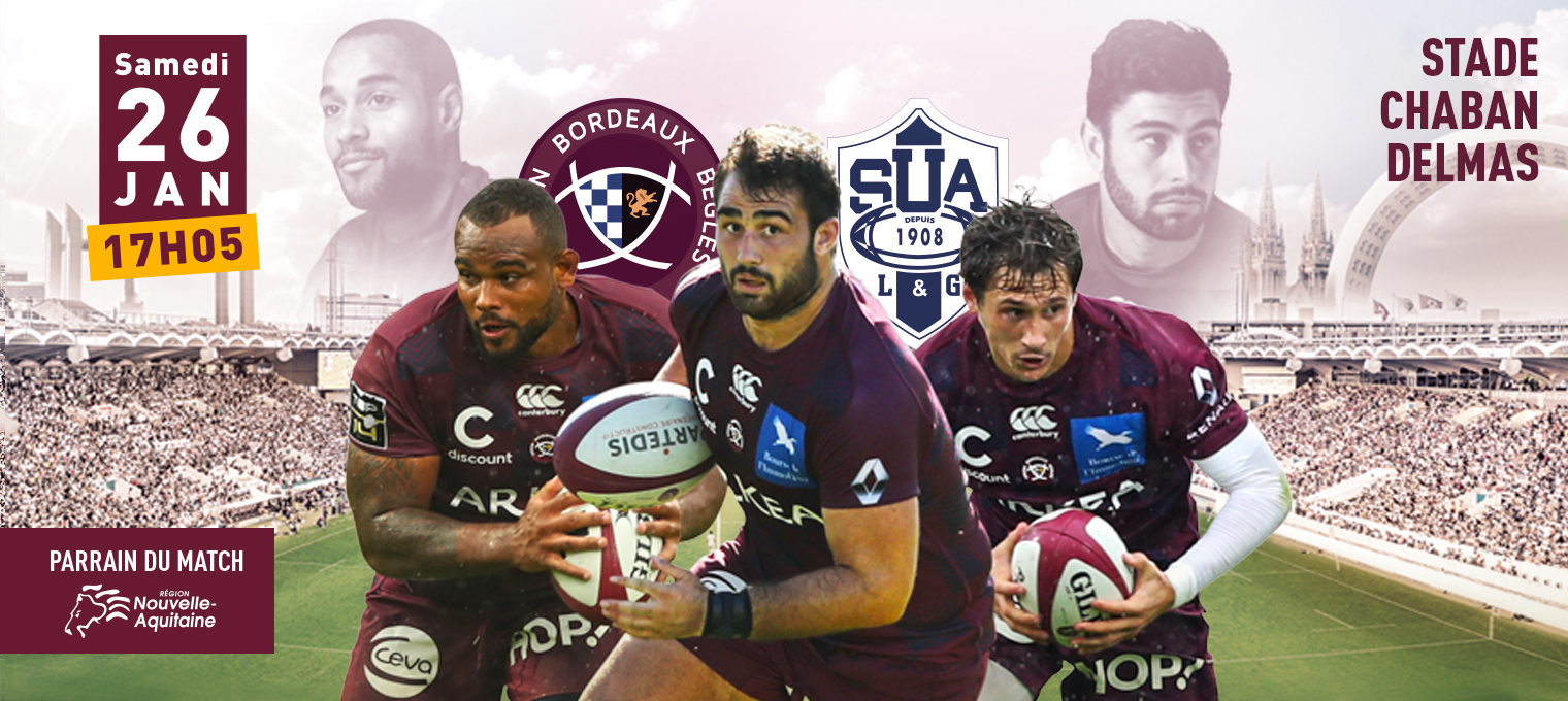 En raison du report du match de Ligue 1 entre Nantes et Saint-Etienne initialement prévu ce samedi 26 janvier, la rencontre entre l'UBB et le SU Agen (J15) voit sa programmation changer avec un coup d’envoi à 17h05 au lieu de 18h00 (diffusion sur Canal +). Merci de votre compréhension.
