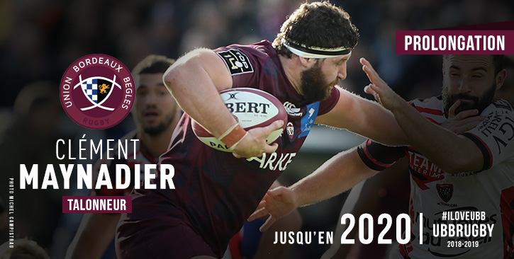 Le talonneur de l'Union Bordeaux Bègles Clément Maynadier a prolongé son contrat de une saison supplémentaire. La belle histoire entre l'UBB et son talonneur continuera donc de s'écrire, pour le plus grand plaisir des supporters et de ses coéquipiers !