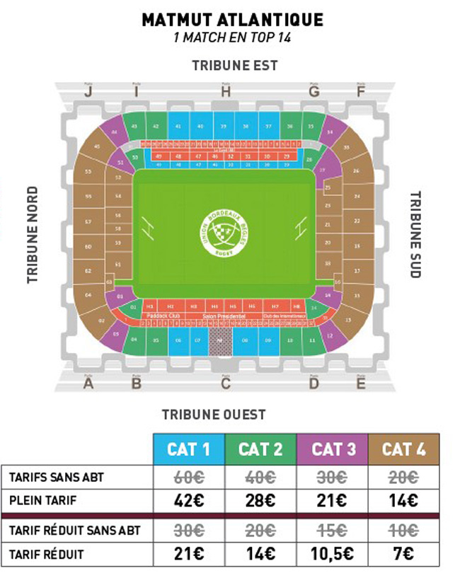 NB : les deux matchs amicaux prévus à Chaban les 3 et 16 août face à Toulon et au CA Brive ne sont pas intégrés dans l'abonnement. Des tarifs attractifs seront toutefois proposés en billetterie.