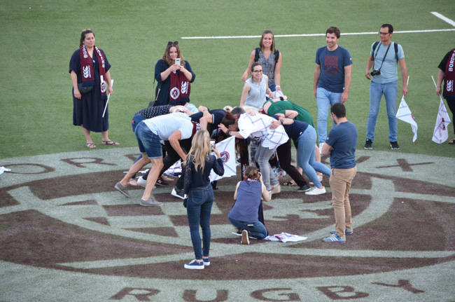 Une trentaine de membres de la Blog Connexion, association composée d'influenceurs néo-aquitains, a été invitée à découvrir le club en immersion mardi soir. Une soirée conviviale qui a démarré par la visite du Ceva Campus, suivie d'une présentation de l'UBB en salle vidéo et d'un cocktail dînatoire sur le roof top du centre de performance. A en juger par les résultats du quiz lancé en cours de soirée ou des tentatives de drops plus ou moins abouties, il s'agissait pour certains d'une véritable initiation au rugby !
