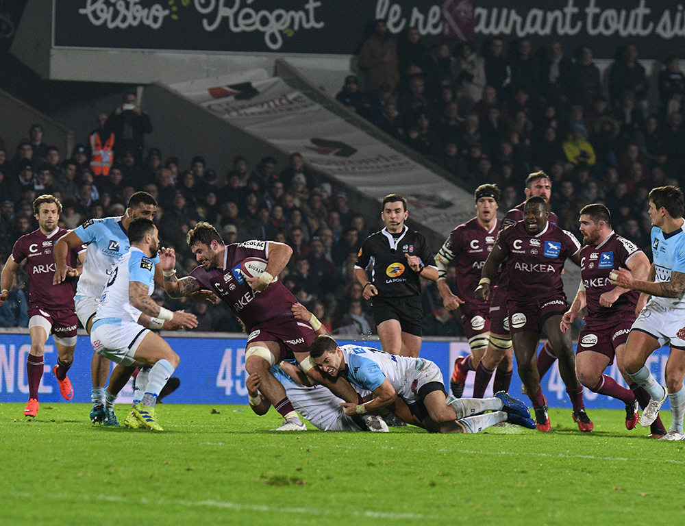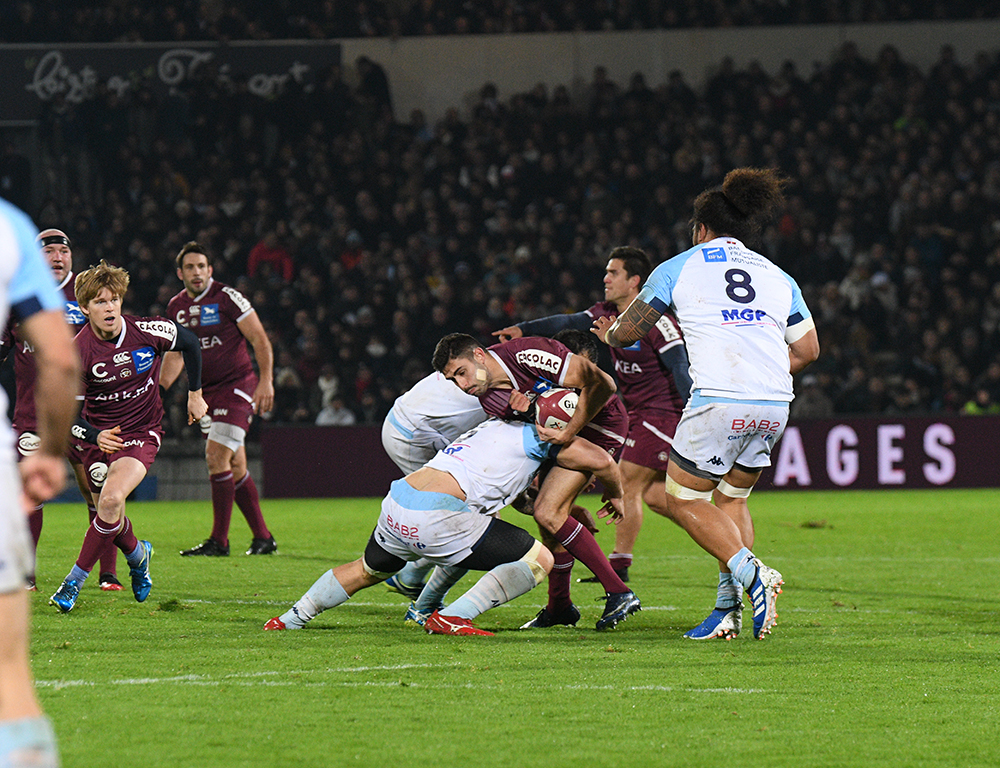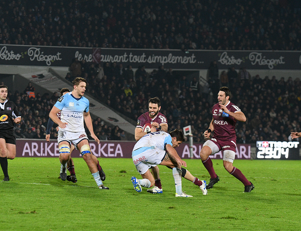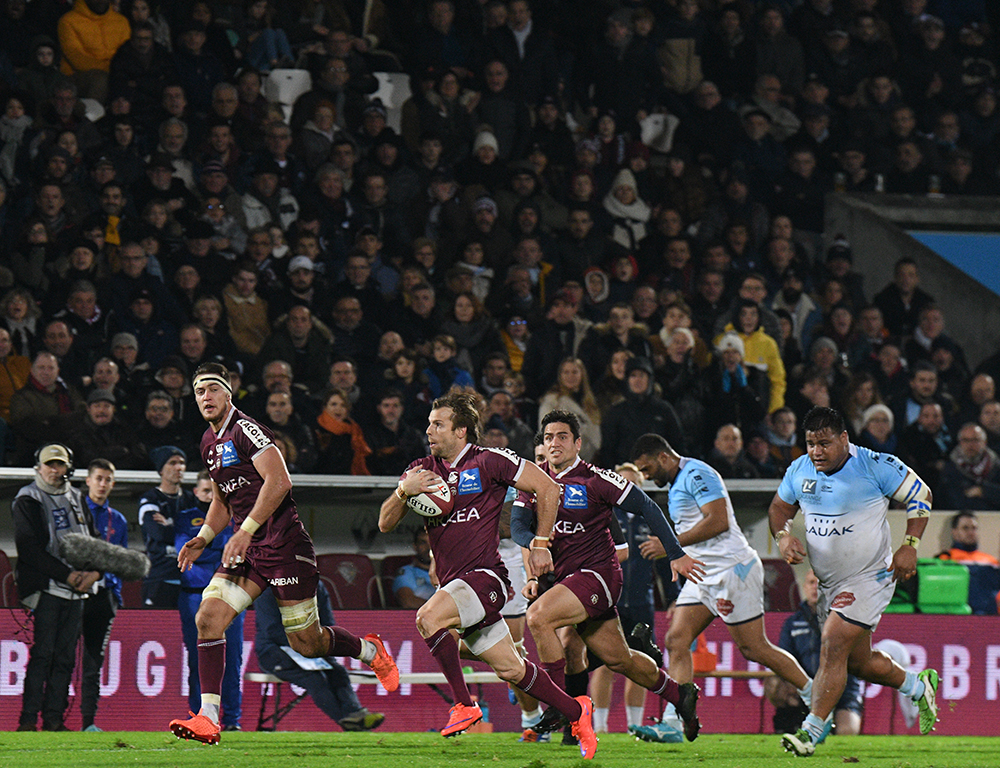 Les Bordeaux & Blanc ont commencé la partie sur les chapeaux de roues face aux Bayonnais pour inscrire un essai dès la première minute. Yann Lesgourgues, en filou, profitait d'une percée d'un Romain Buros intenable pour ouvrir la marque d'entrée (7-0).