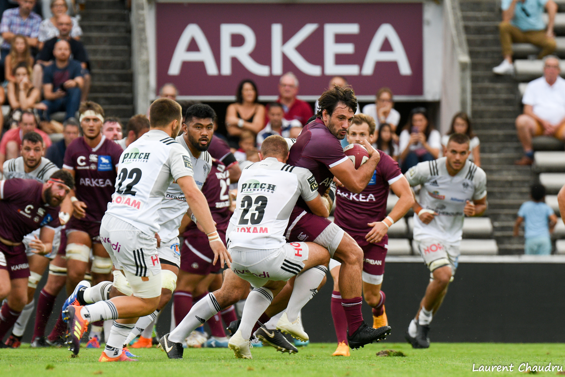 En effectuant 15 courses ballon en main contre Bayonne, le troisième ligne Briviste Otar Giorgadze affiche le deuxième bilan de la 1e journée de Top 14 derrière le Palois, Votu (17 courses).