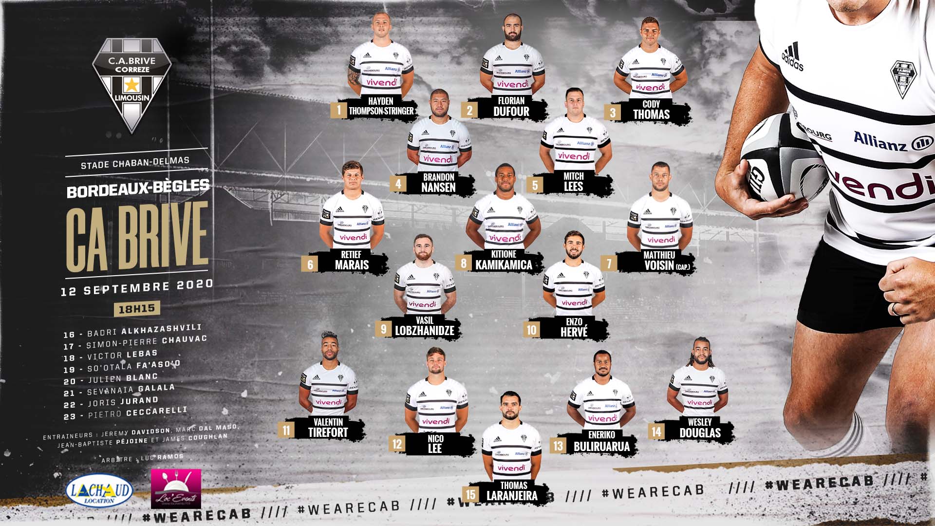 Christophe Urios, Julien Laïrle et Frédéric Charrier ont dévoilé les noms des 23 joueurs qui affronteront Brive ce samedi à 18h15 à Chaban.