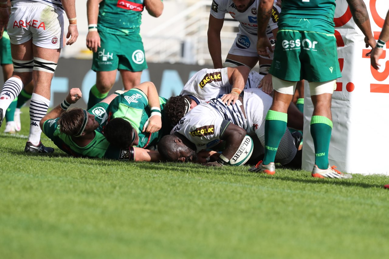 Blessé à l’échauffement, Vadim Cobilas cédait sa place à Ben Tameifuna, lui-même remplacé par Lasha Tabidze sur le banc. Les hommes de Christophe Urios démarraient la partie pied au plancher et asphyxiaient les Palois. Whitelock écopait d’un carton jaune, dont profitaient les avants girondins pour pilonner la ligne adverse et envoyer Mamad Diaby aplatir pour le seul essai de la première période. Les 15 dernières minutes étant plutôt à l’avantage des béarnais, l’avance de 7 points à la pause pour l’UBB semblait mince (16 à 9).