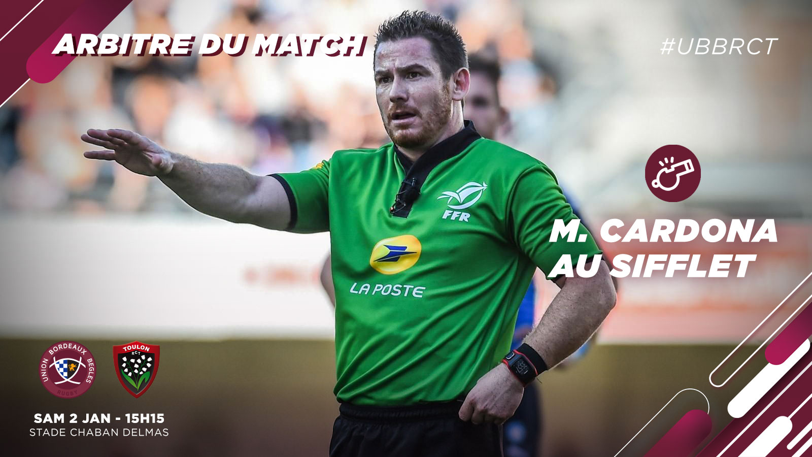 Pour le dernier match de la phase aller, si l'on excepte le report de la réception de Clermont, M. Cardona officiera au centre du terrain. Il sera assisté de M. Dufort et M. Jaymes sur les touches, tandis que M. Lafon sera à la vidéo.
