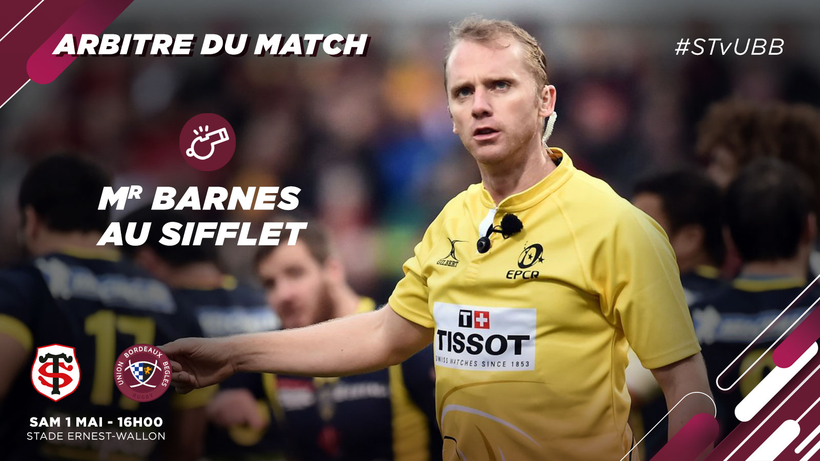 L'EPCR a désigné le corps arbitral des demi finales de Champions Cup. Mr Barnes sera au sifflet pour celle entre le Stade Toulousain et l'UBB, samedi 1er mai 2021 à 16h.