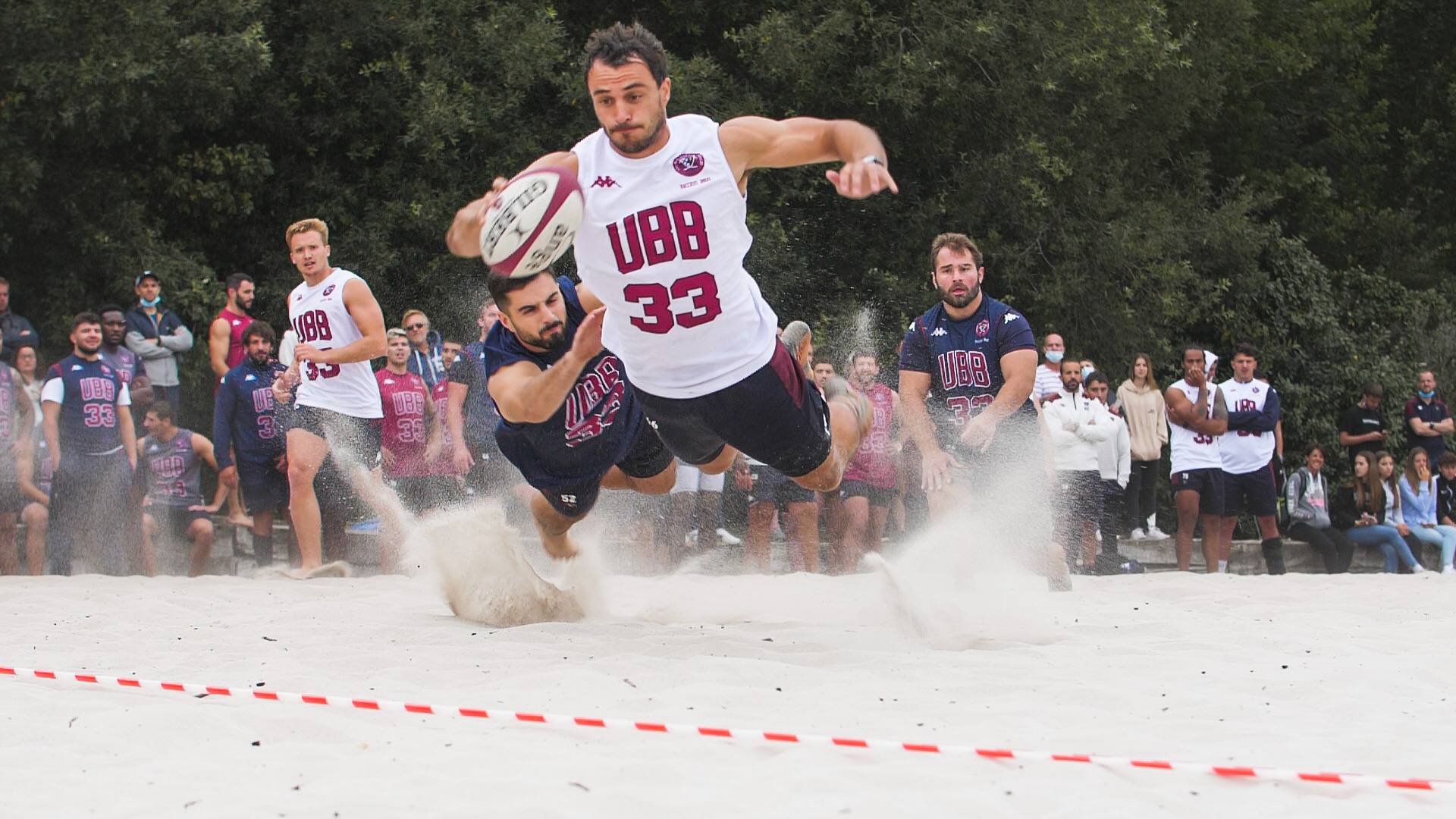 De retour au Ceva Campus la semaine dernière, les Bordeaux & Blanc se sont immédiatement lancés dans les Bacchus de pré-saison. Après un entraînement délocalisé à Cadaujac vendredi 30 juillet 2021, ils se sont retrouvés sur la plage du lac d'Hostens pour une nuit à la belle étoile avant de lancer la 1e journée dess olympiades.