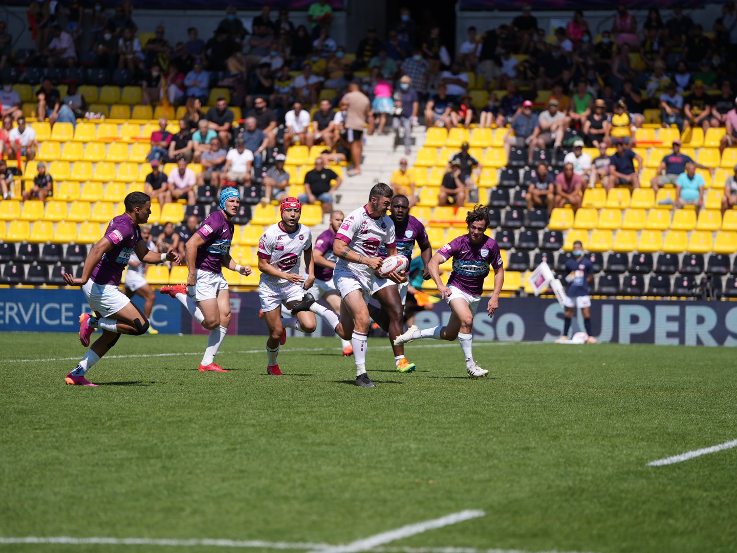 L'UBB CEVA Sevens avait rendez-vous du côté de Marcel-Deflandre à La Rochelle pour la 3e étape de l'In Extenso Supersevens ce samedi 28 août 2021. Propulsés par leur victoire sur Pau (vainqueur de la 1e étape) lors de la 2e étape à Toulouse, les Girondins ont montré de belles intentions face à un Racing 92 venu chercher sa qualification pour l'étape finale. Mais les Racingmen ont su profiter des erreurs de défense des Bordeaux & Blanc pour l'emporter (31-12).