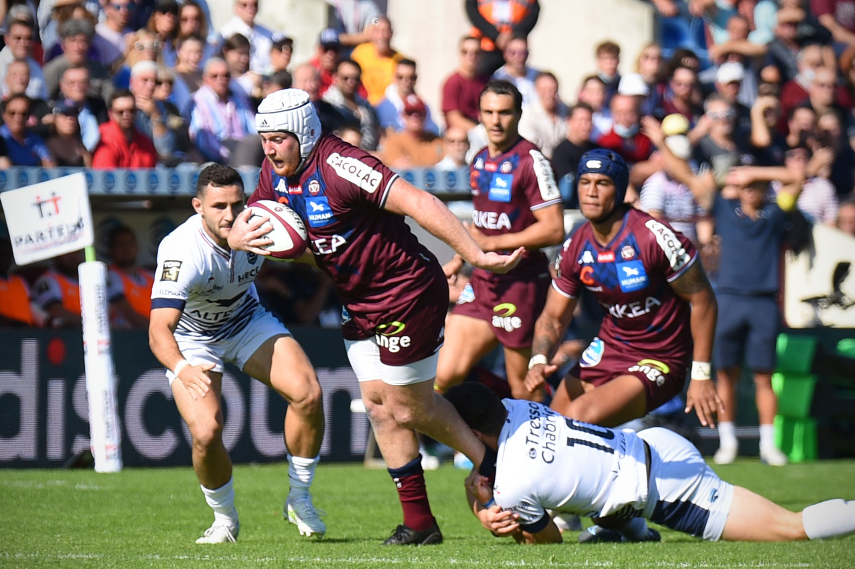 Dans l'avancée, les Bordeaux & Blanc remettaient immédiatement la pression sur le MHR. Après le quart d'heure de jeu, c'est Ben Tameifuna, au près, qui venait concrétiser les efforts de ses avants en s'étirant pour passer le bras derrière la ligne et marquer (10-3, 17e). Il était rapidement imité par UJ Seuteni, lui aussi à la conclusion d'un gros temps fort.