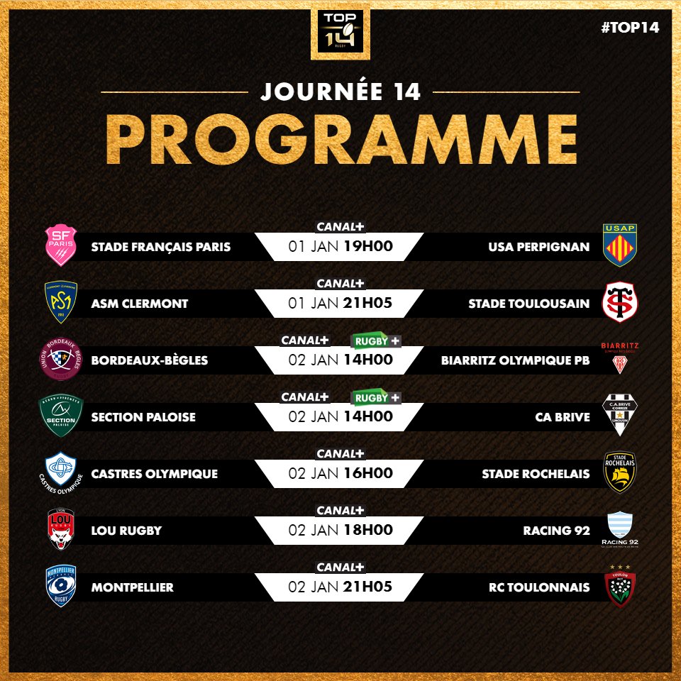 Les Boxing Days du Top 14 font leur retour ! Voici la programmation des 13e et 14e journées du TOP 14 :