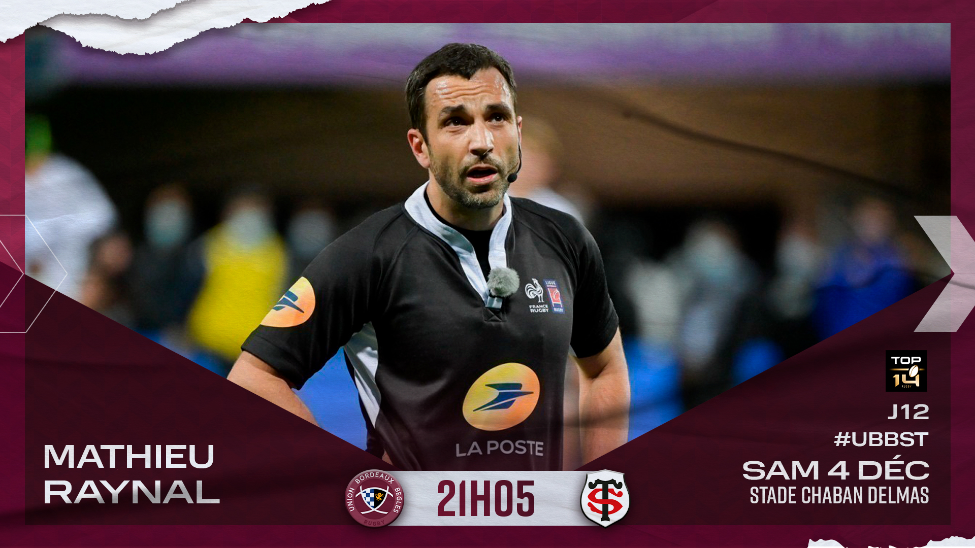 M. Raynal sera au sifflet pour UBB - Toulouse samedi 4 décembre à 21h05, il sera assisté par M. Rousselet et M. Crapoix sur les touches ainsi que par M. Bonhoure à la vidéo.