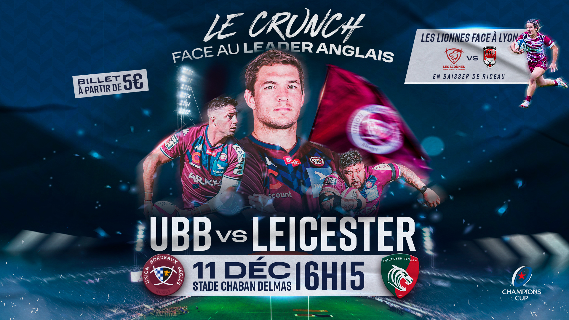 L'UBB et Chaban retrouvent la Champions Cup ce samedi 11 décembre à 16h15 ! Après avoir atteint la demi-finale la saison dernière, les Bordeaux & Blanc se préparent à un choc d'entrée face au leader invaincu du Premiership : les Leicester Tigers. Voici quelques chiffres clés.