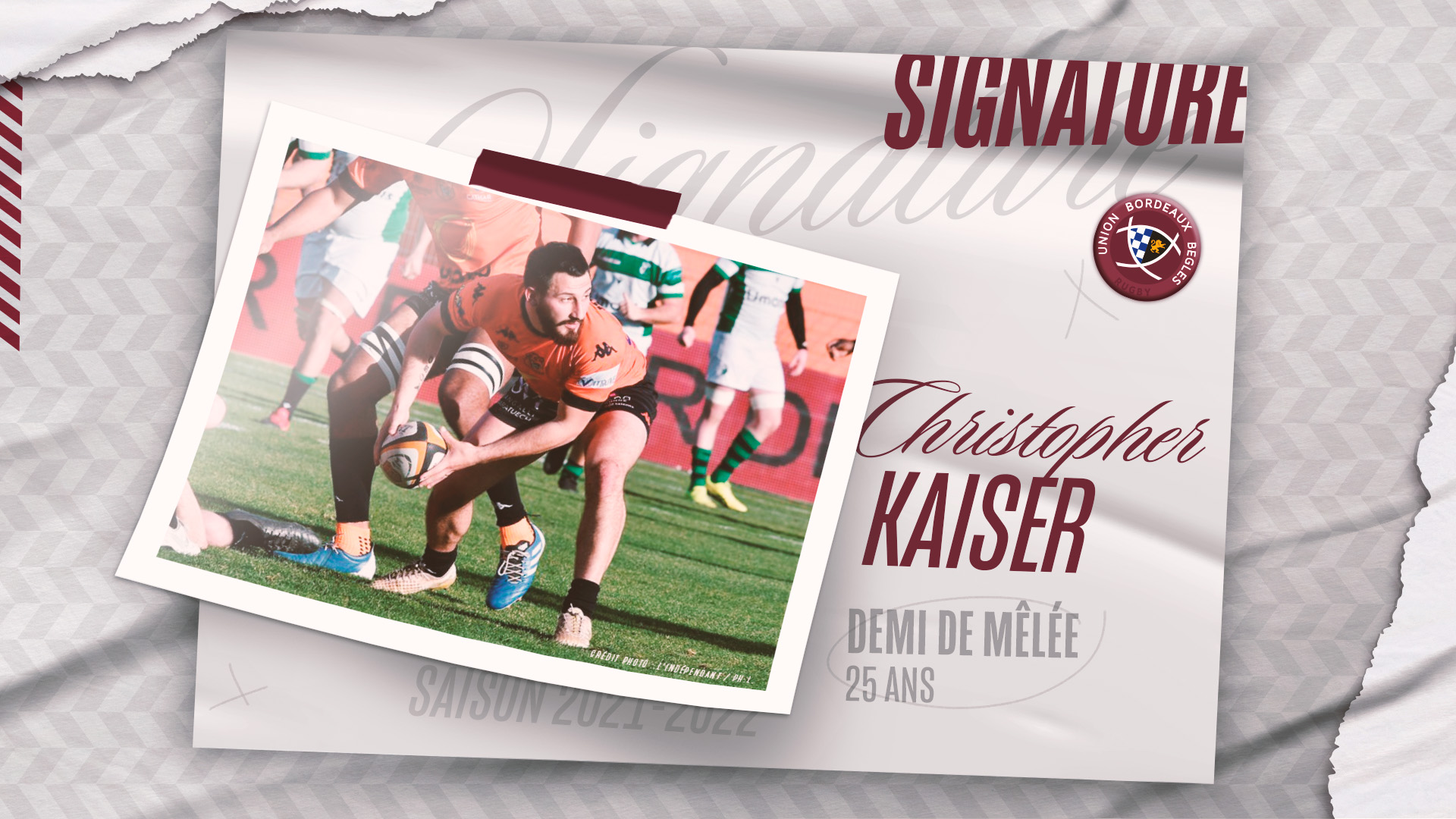 Le demi de mêlée Christopher Kaiser s'engage avec l'UBB pour pallier l'absence de Jules Gimbert.