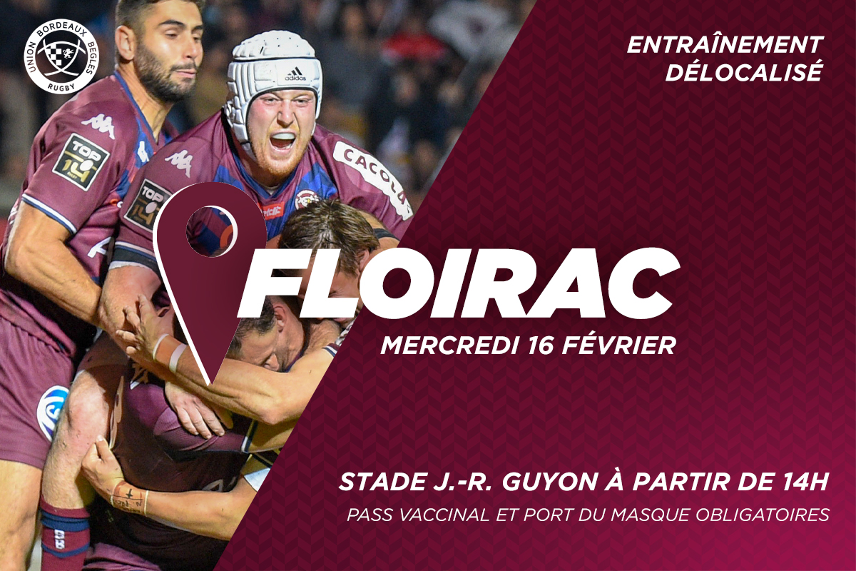 L'UBB vous donnent rendez-vous à Floirac pour un entraînement délocalisé mercredi 16 février ! Venez pousser derrière les Bordeaux & Blanc qui prépareront la réception du Racing 92.
