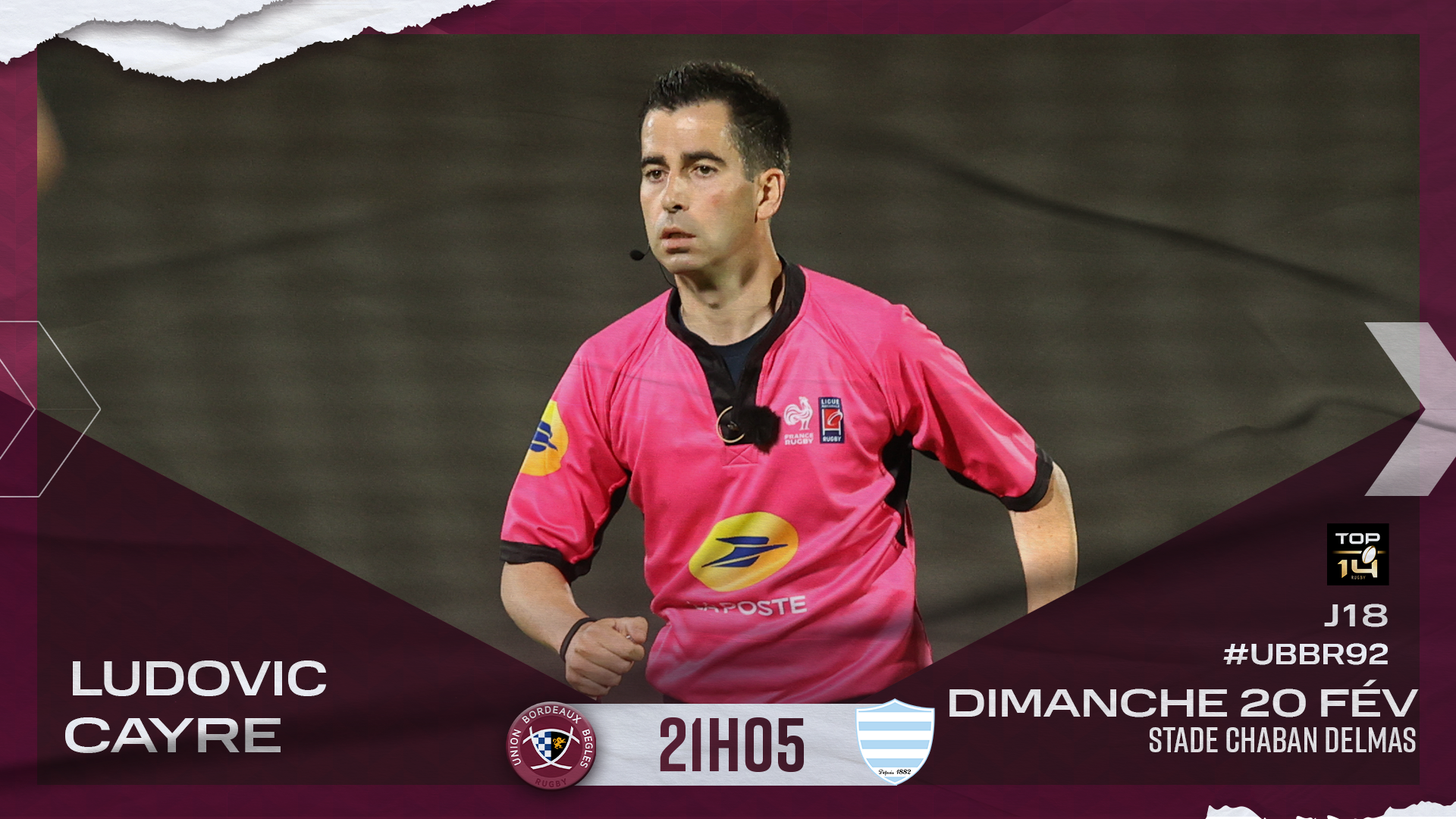 M. Cayre sera assisté de M. Cardona et M. Coussan sur les touches pour la réception du Racing 92, dimanche 20 février à 21h05, à l'occasion de la 18e journée de Top 14 ainsi que par M. Hadj Bachir à la vidéo.