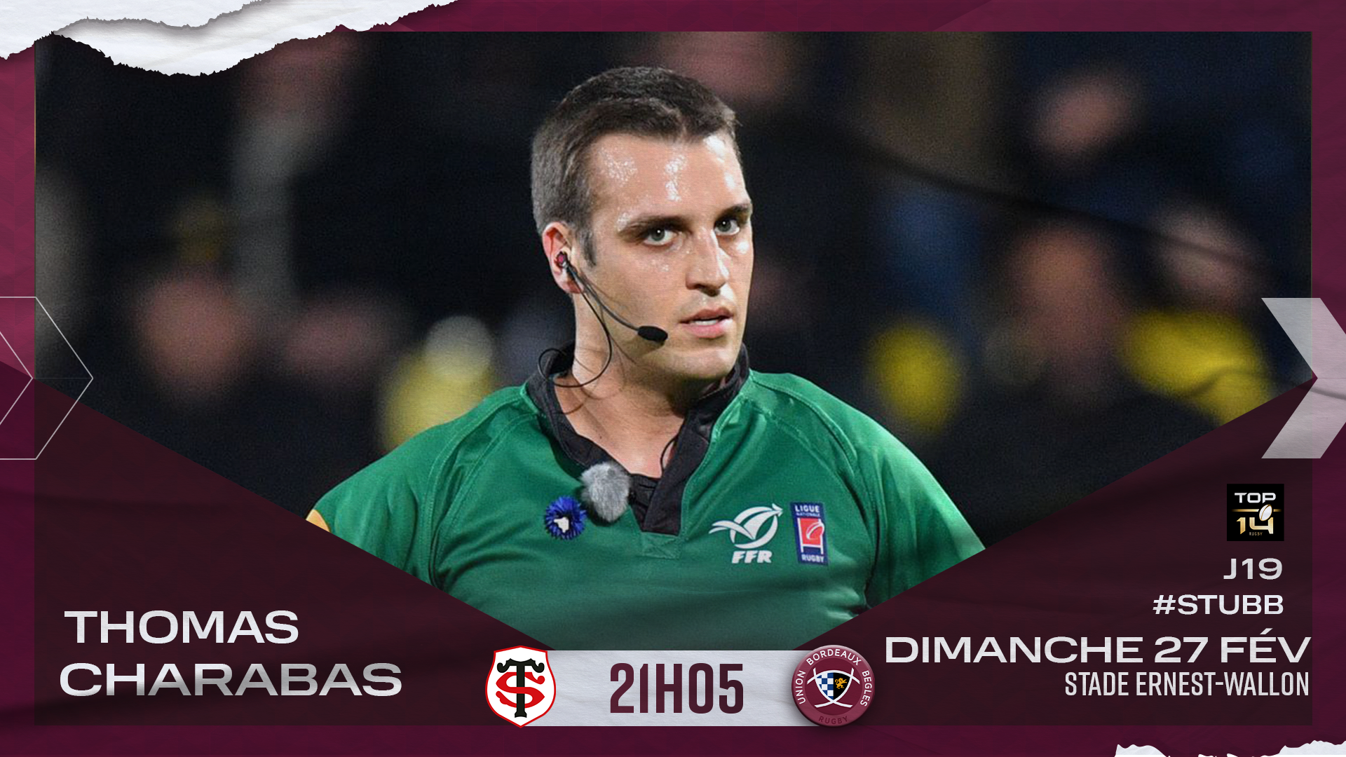 La LNR a officialisé le corps arbitral pour le déplacement à Toulouse, ce dimanche 27 février à l'occasion de la 19e journée de Top 14. Thomas Charabas sera l'arbitre principal de cette rencontre.