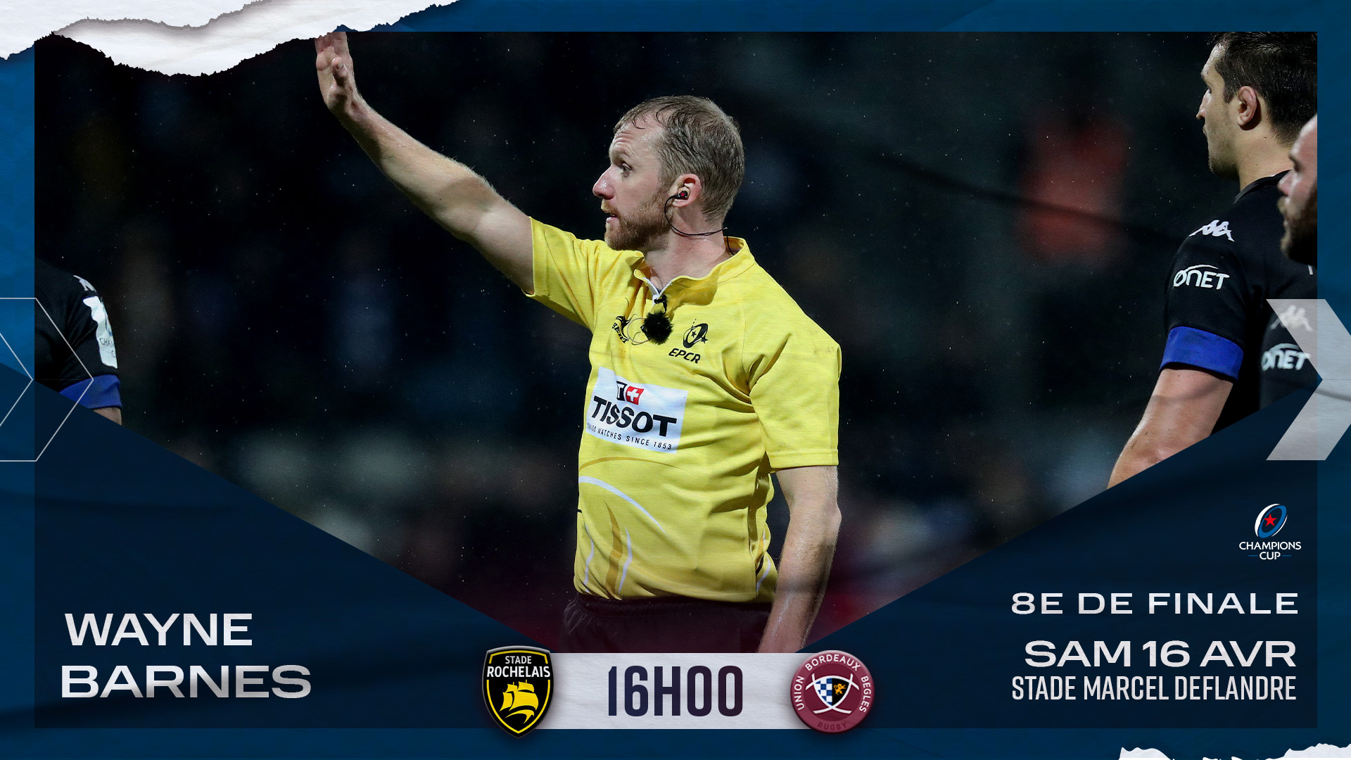 L’EPCR a officialisé le corps arbitral pour le déplacement à La Rochelle, ce samedi 16 avril, à l’occasion du retour du 8e de finale de Champions Cup.