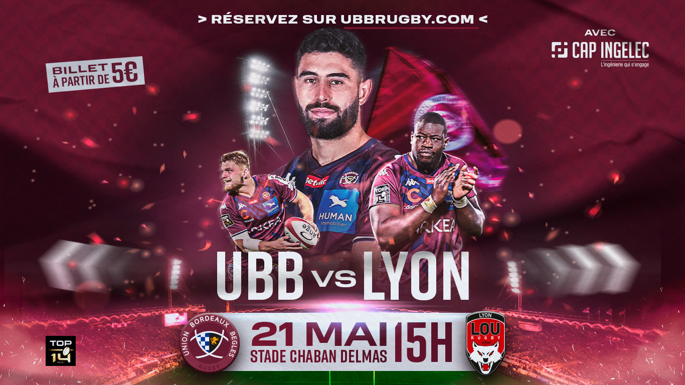 L'Union Bordeaux Bègles reçoit le LOU ce samedi 21 mai à 15h00 à Chaban à l'occasion de la 25e journée de Top 14 ! Les joueurs auront besoin du soutien de leur public, le premier d'Europe, pour leur dernière sortie de la saison régulière à domicile.