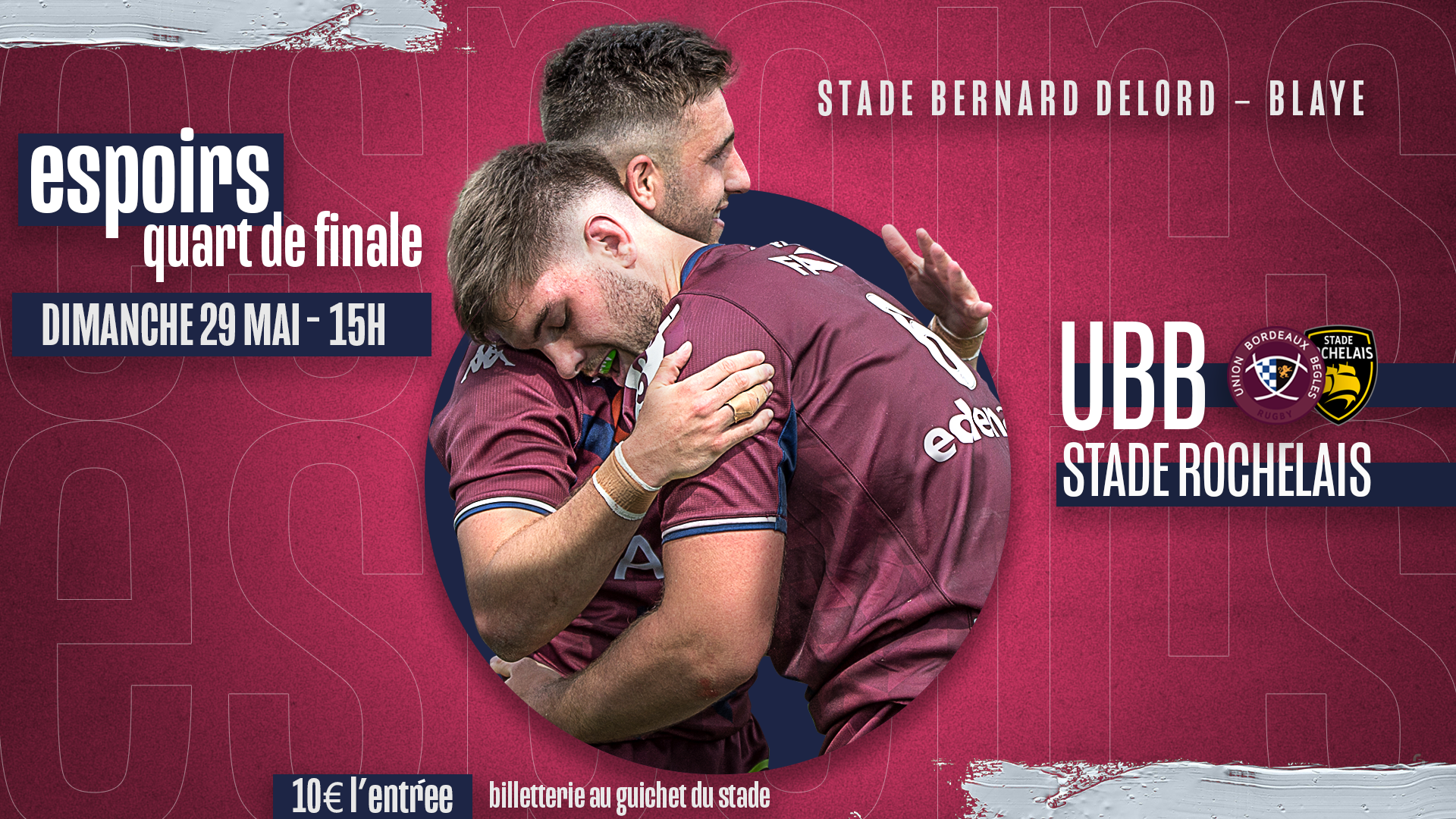 Les Espoirs de l'UBB jouent leur quart-de-finale contre La Rochelle dimanche à 15h00 à Blaye ! Venez nombreux les encourager !