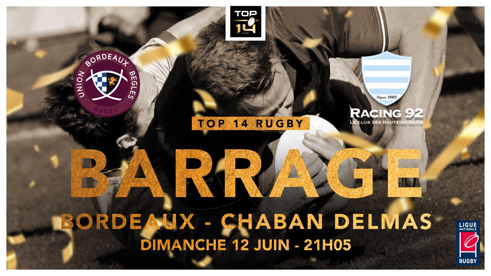 L'UBB reçoit le Racing 92 ce dimanche 12 juin à 21h05 à Chaban pour un Barrage en Top 14. La billetterie est ouverte depuis lundi, n'attendez plus !
