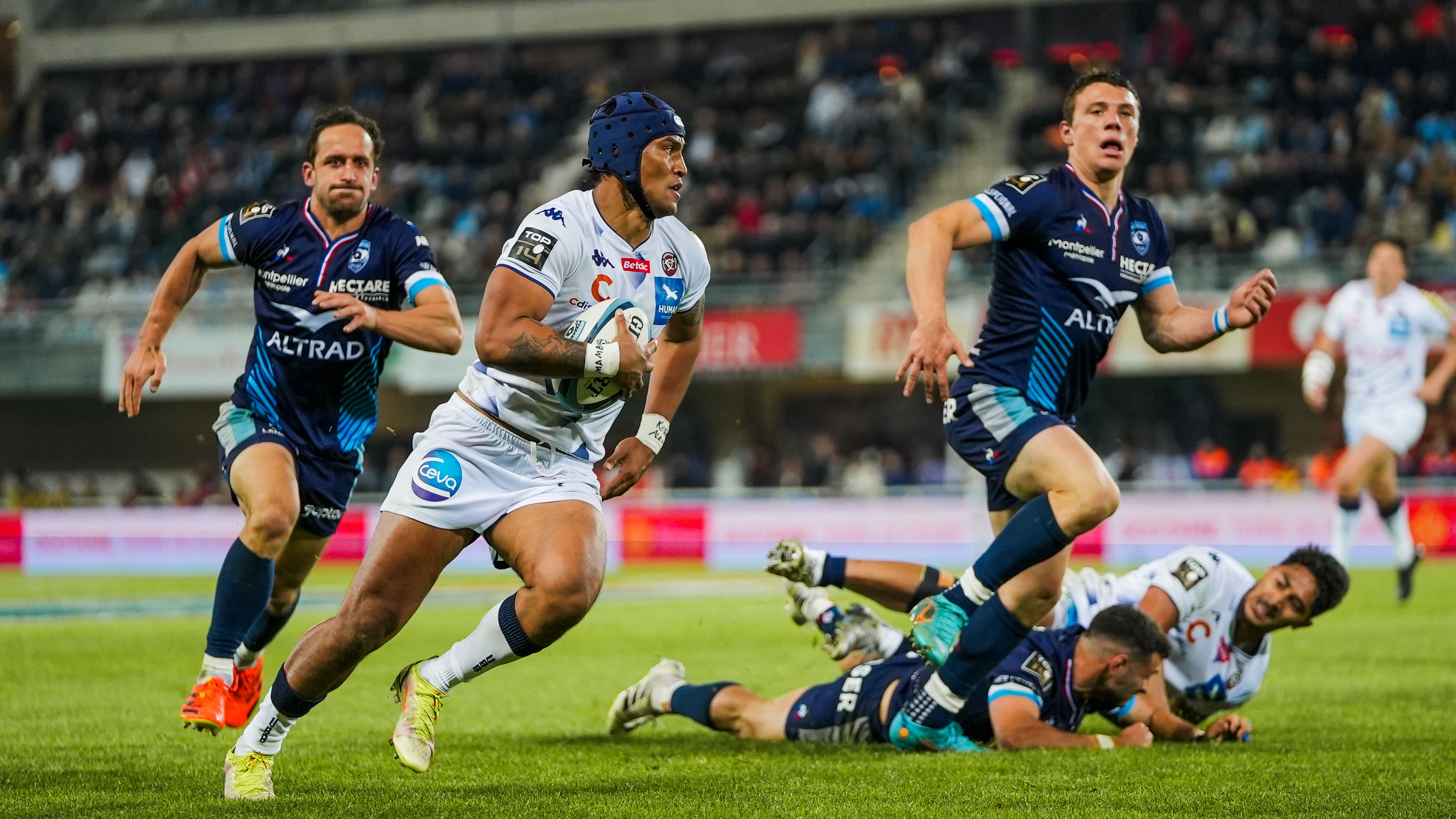 4e défense du Top 14, la formation héraultaise affiche la meilleure efficacité au plaquage avec 79% de plaquages réussis, soit plus de 3200 prises dans le sillage d'Alexandre Bécognée (188 plaquages) et Zach Mercer (177).