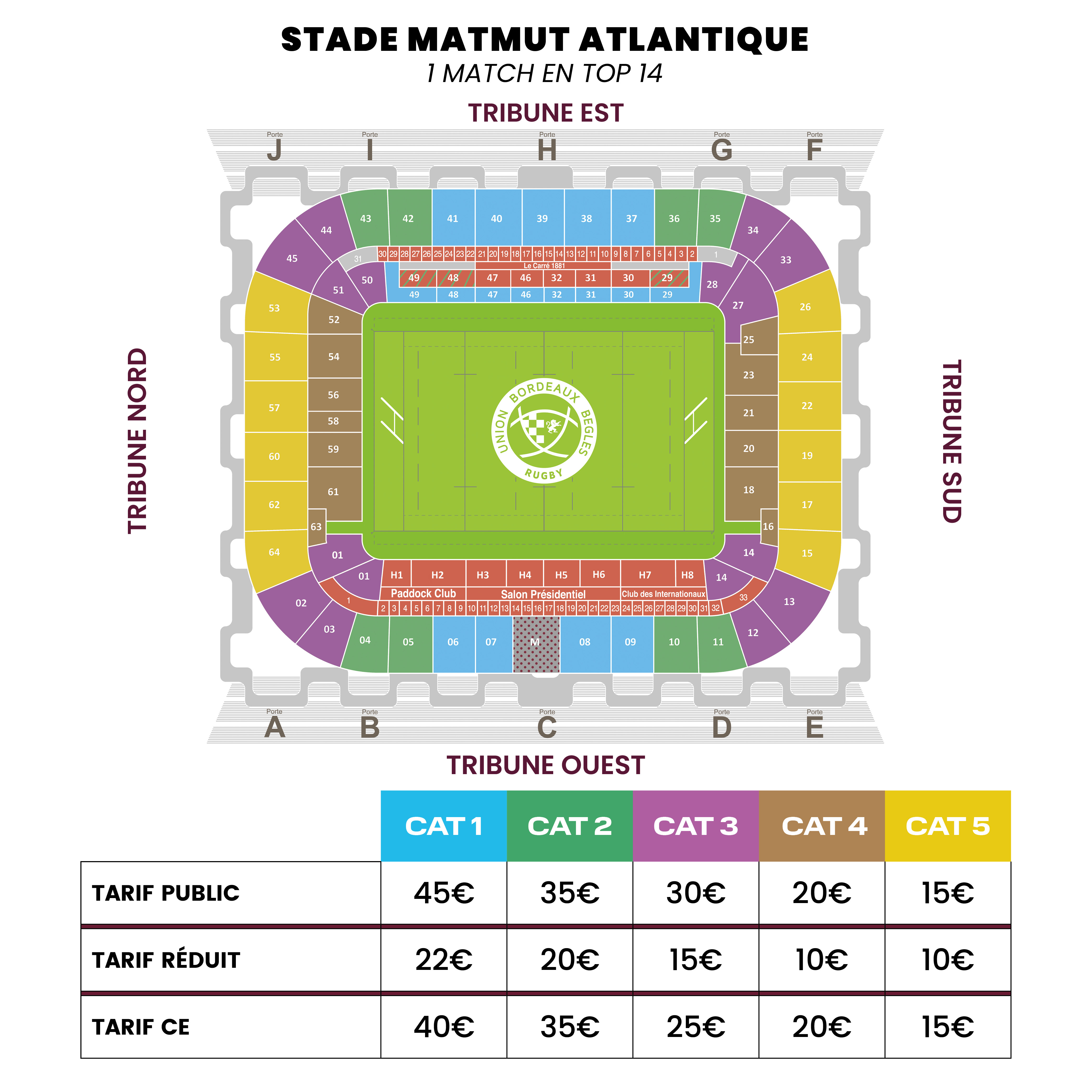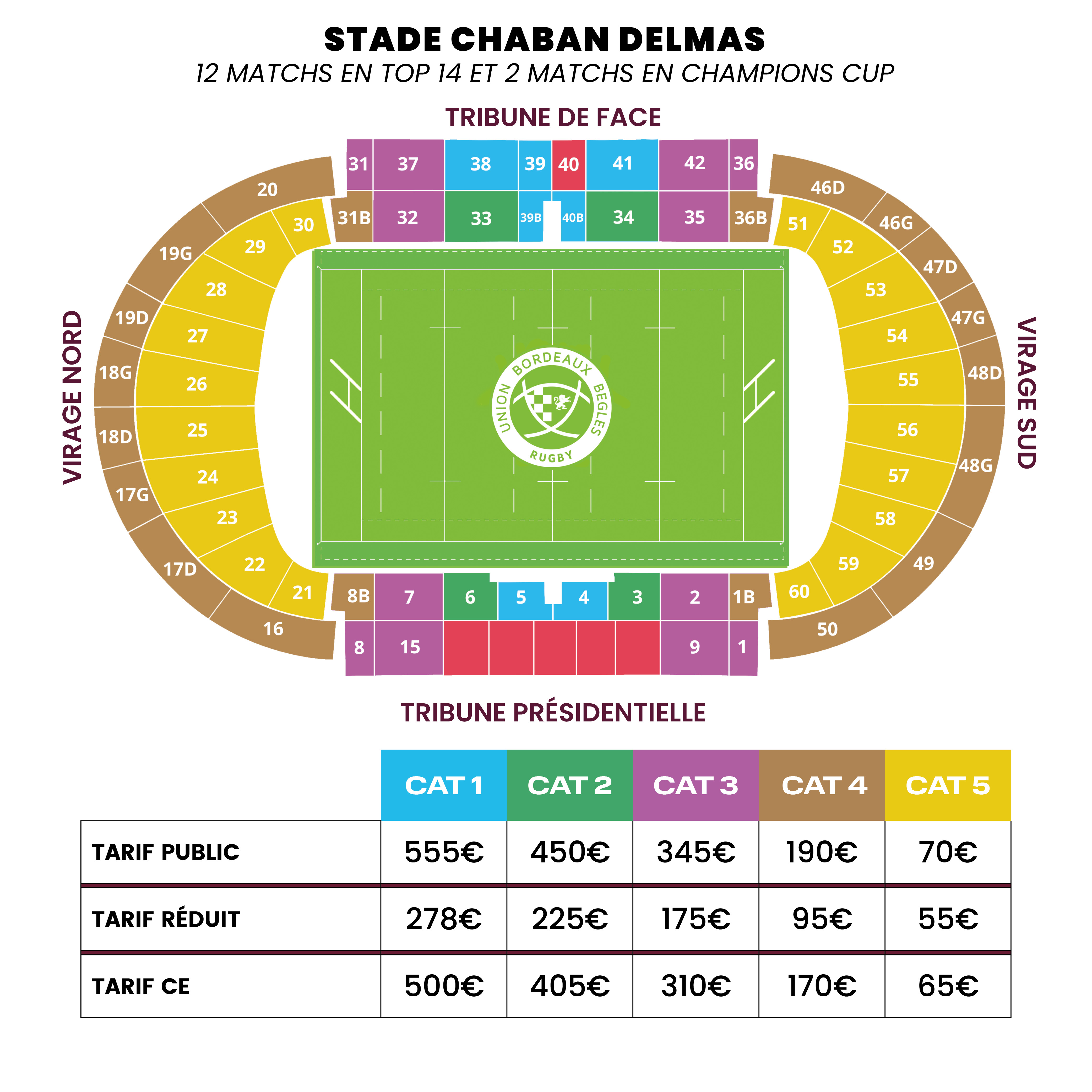 Vous pouvez choisir deux catégories différentes pour l'abonnement au stade Chaban Delmas et le match au Matmut Atlantique.