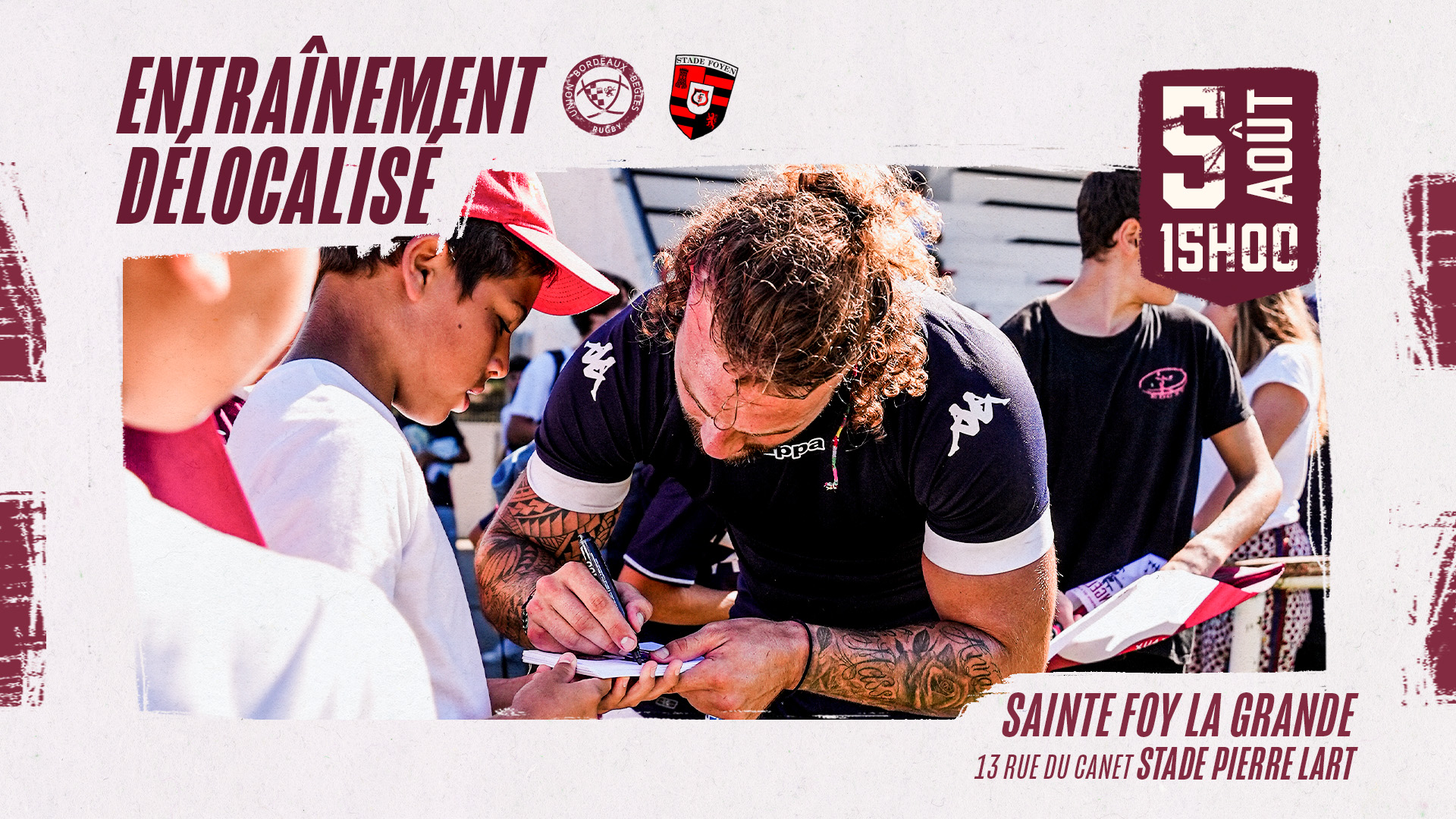 L'Union Bordeaux Bègles vous donne rendez-vous pour un entrainement délocalisé ouvert au public, le vendredi 5 août à 15h00 au stade municipal Pierre Lart de Sainte-Foy-la-Grande.