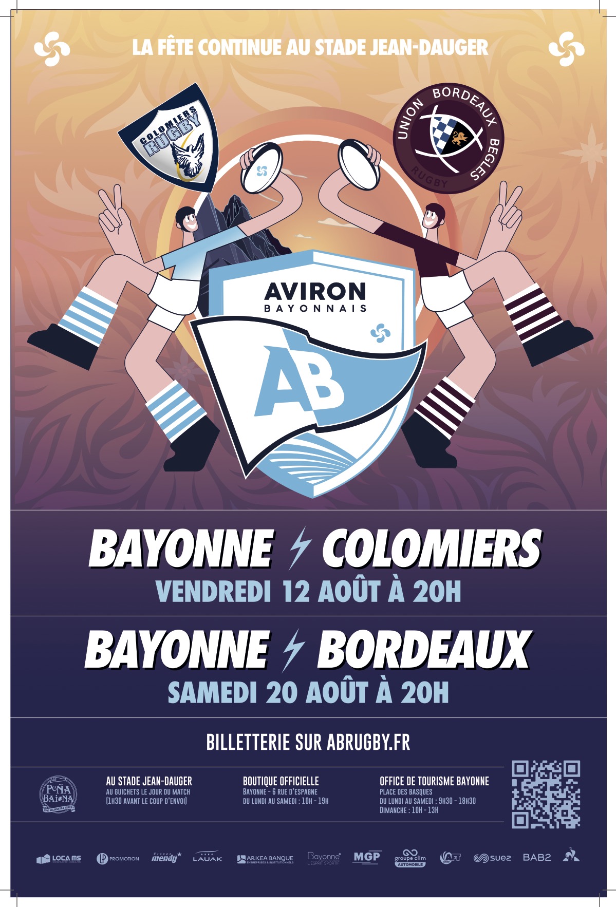 La billetterie pour le match face à Bayonne ouvrira suite au match Aviron Bayonnais - Colomiers (le vendredi 12 aout à Jean-Dauger).