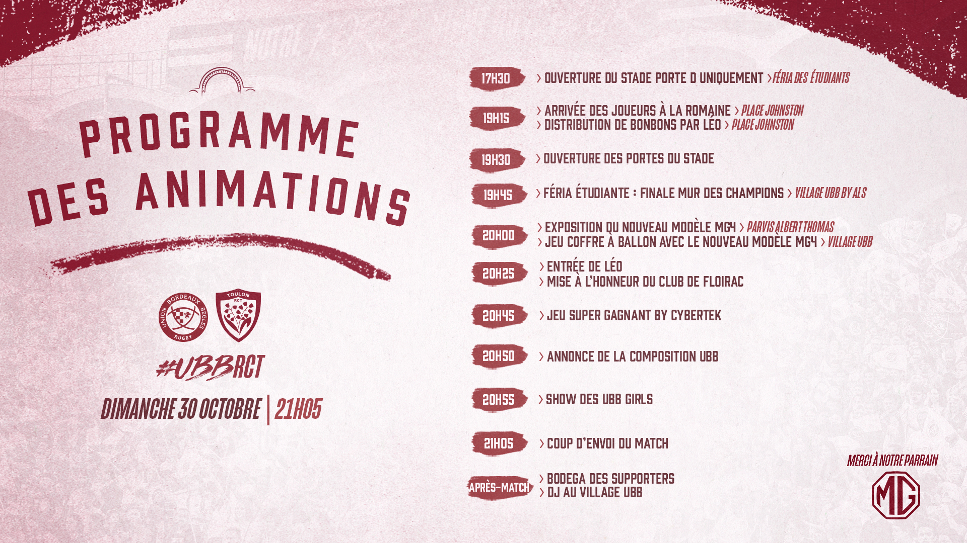 Le retour de la Feria étudiante en avant-match, le modèle de la MG4, Halloween... voici le programme de votre dimanche à Chaban et autant de bonnes raisons d'attraper un billet si ce n'est déjà fait... grosse affluence attendue !