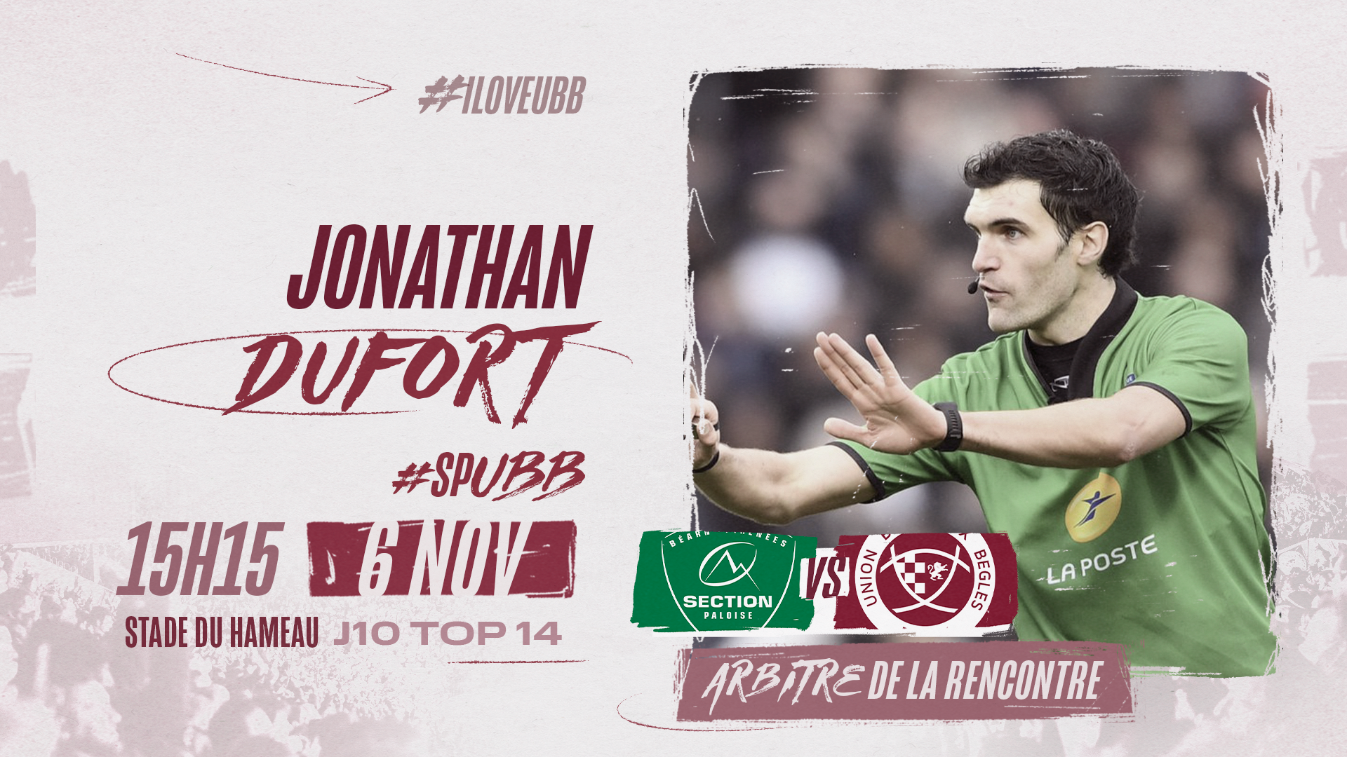 La LNR a désigné M. Dufort pour arbitrer PAU - UBB, ce dimanche 6 novembre à 15h15 à l’occasion de 10ème journée de Top 14.