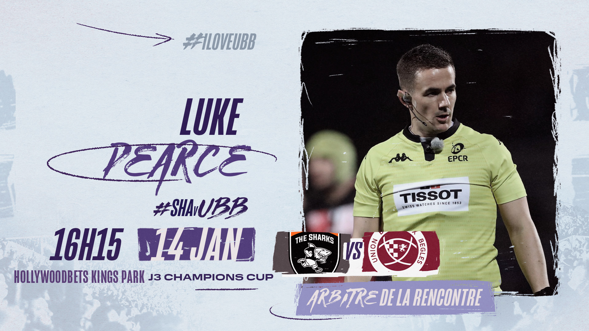 L'EPCR a désigné L. Pearce pour arbitrer Cell C Sharks - UBB, ce samedi 14 janvier à l’occasion de 3ère journée de Champions Cup.
