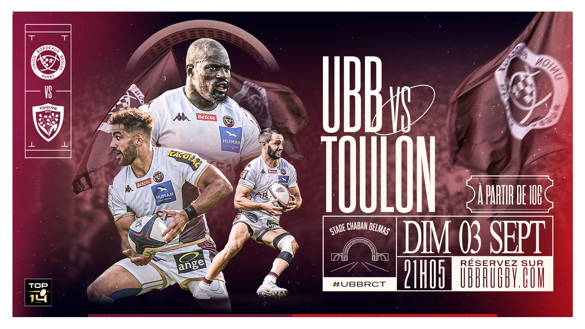 L'UBB jouera à domicile face au RC Toulon pour la 3ème et dernière journée de Top 14 avant la trêve Coupe du Monde. À l'occasion, Chaban accueillera le Collectif Métissé ce dimanche soir en avant-match!