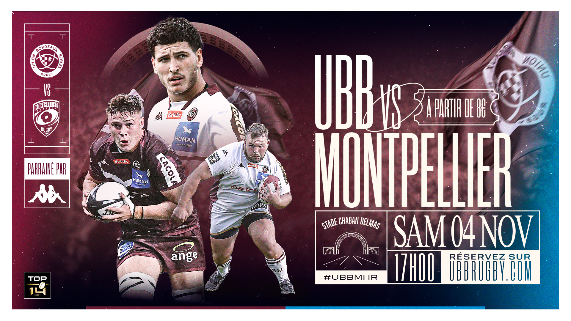 Retour du TOP 14 à Chaban ! Après leur déplacement au Stade Toulousain pour la reprise du championnat au lendemain de la finale de la Coupe du monde (4e journée, dimanche 29 octobre), nos girondins recevront Montpellier samedi 4 novembre à 17h (5e journée). La billetterie vient d'ouvrir.