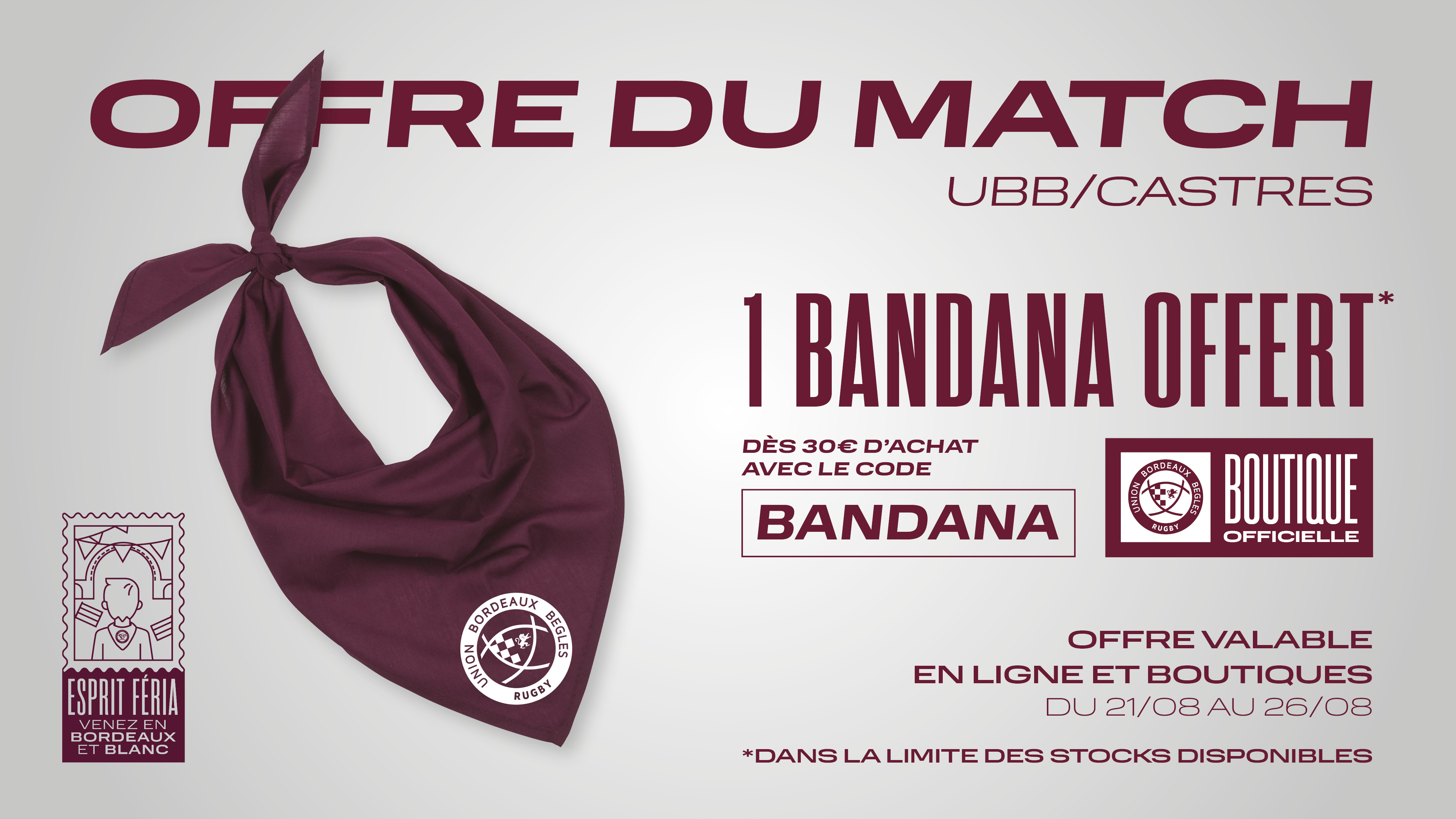 Un bandana aux couleurs de l'UBB vous est offert dès 30€ d'achat en boutique.*