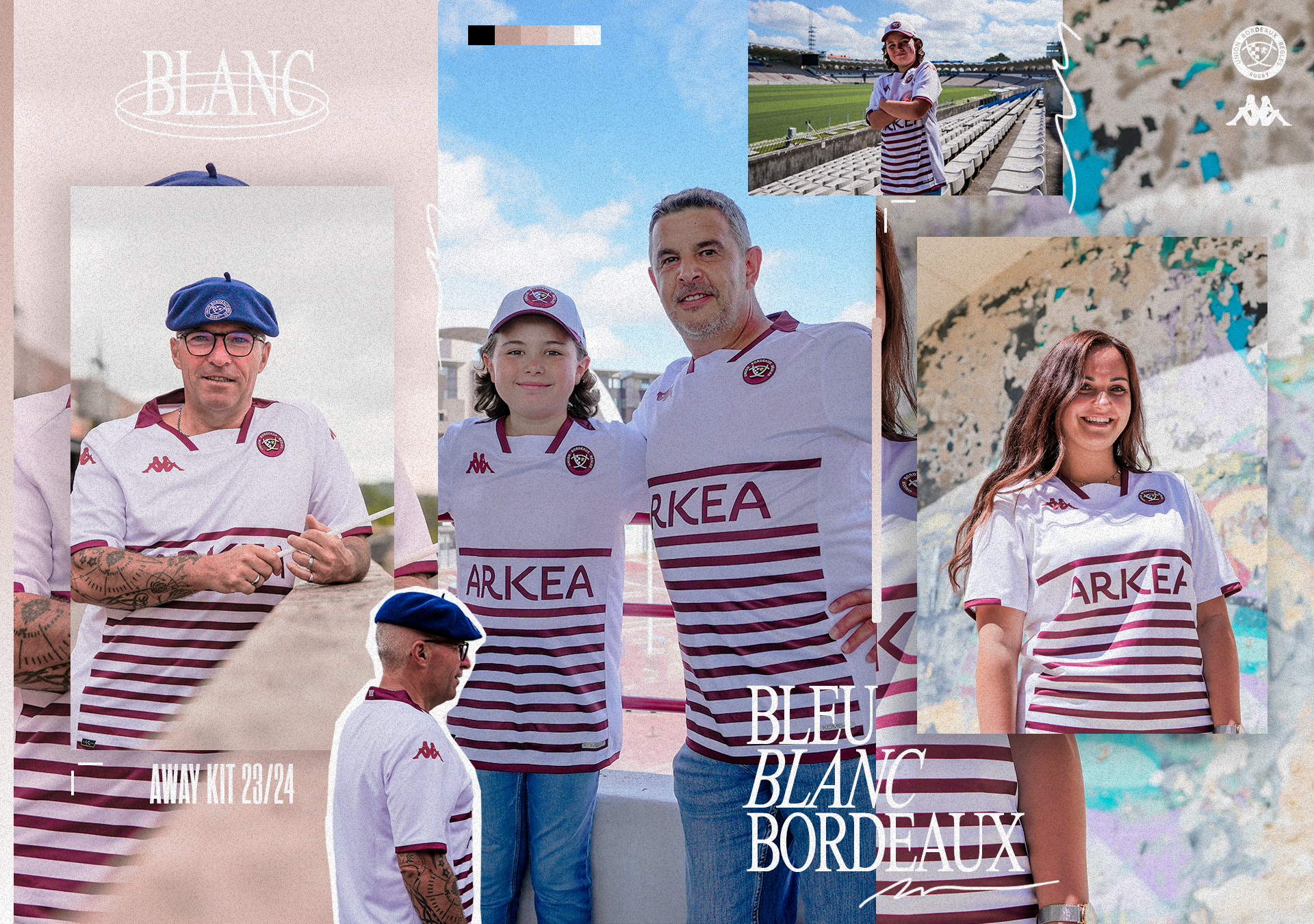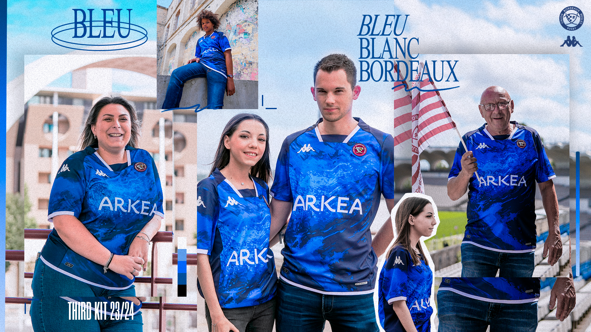 À quelques jours de la reprise du TOP 14, l'Union Bordeaux Bègles et Kappa ont le plaisir de dévoiler les nouvelles tenues girondines pour la saison 2023-2024. Forts de la plus grande affluence du rugby et d'un public toujours plus engagé à nos côtés, nous avons souhaité cette année mettre à l'honneur nos supporters en sollicitant des abonnés membres des clubs supporters de toutes générations, symboles de la diversité de notre public.