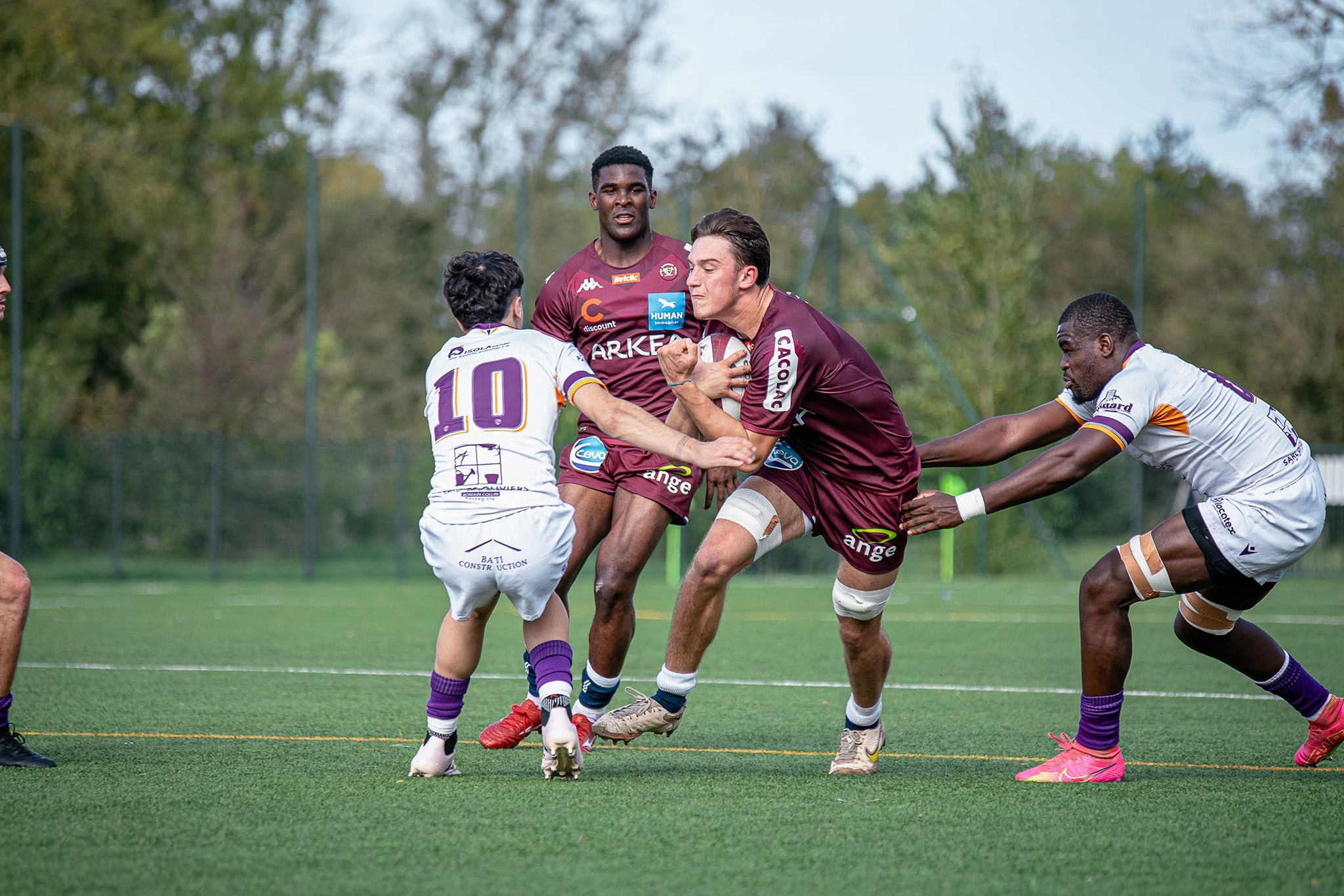 Au centre nous retrouverons Pablo Valles (12) et Emilien Trezieres (13), encadrés par Tevita Sabola (11) et Maël Moustin (14) sur les ailes.