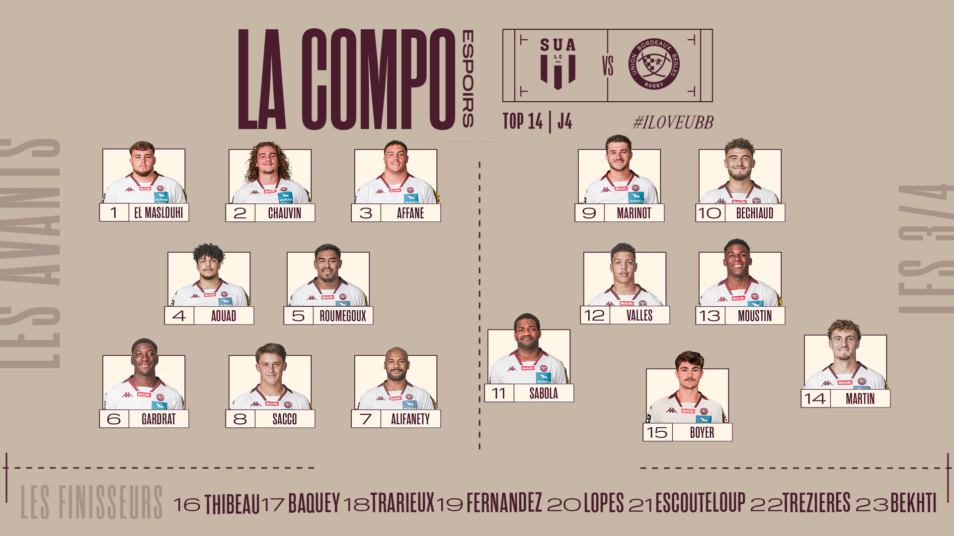 Retrouvez la composition de nos Espoirs avant leur match à Agen, ce samedi 25 novembre à 15h, sur le terrain synthétique de Armandie.