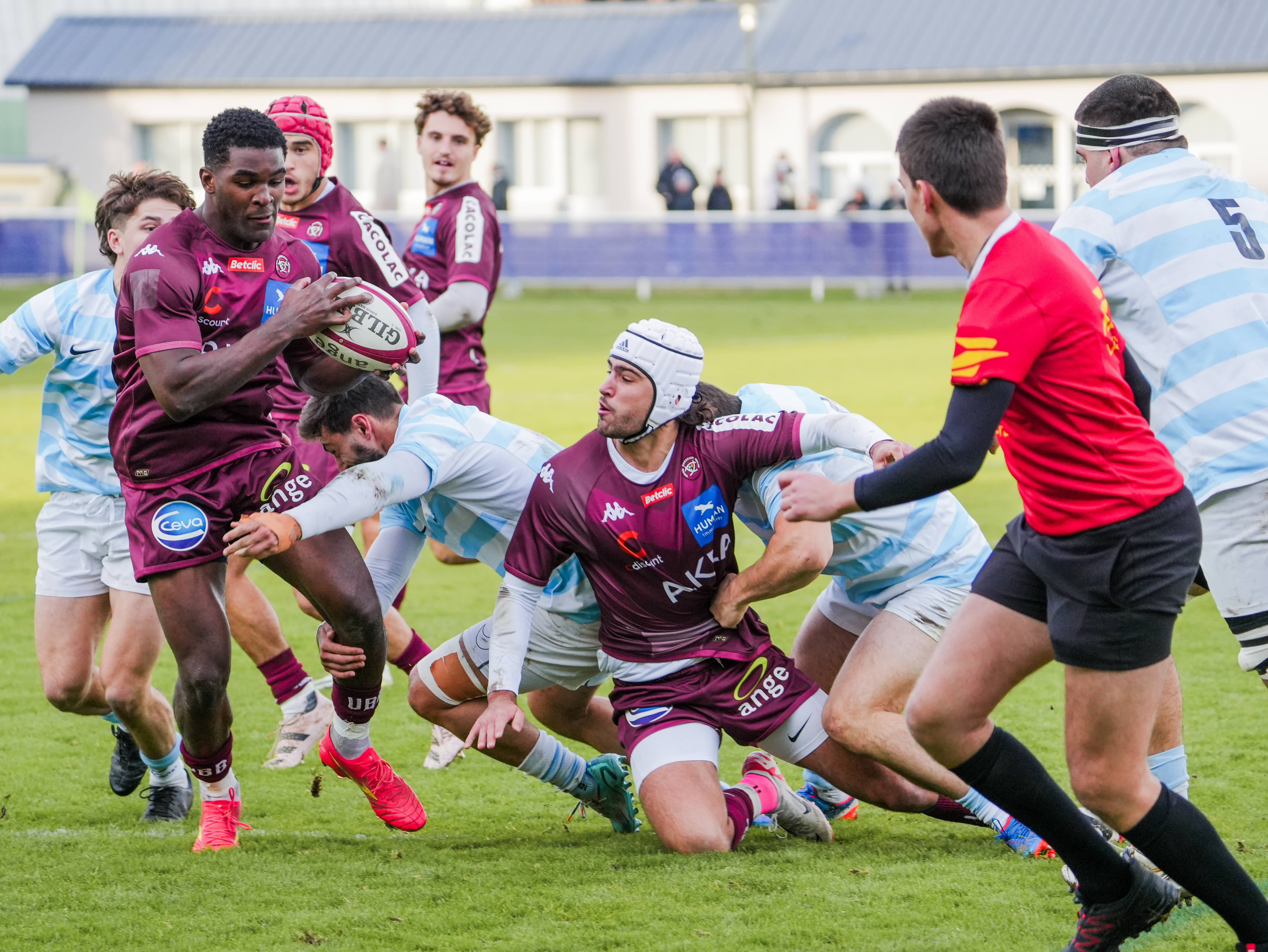 Mathys Alifanety balle en main, Tevita Sabola et Emilien Trezieres