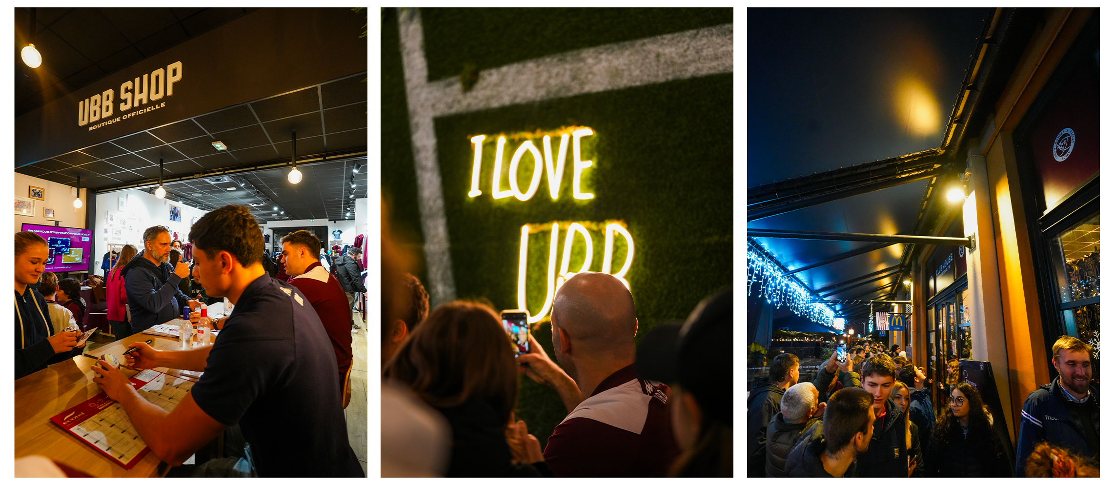 Environ un millier de supporters ont fait le déplacement pour la séance de dédicaces organisée hier au Club House avec trois de nos joueurs internationaux. Maxime Lucu, Louis Bielle-Biarrey et Damian Penaud se sont prêtés au jeu des autographes et des photos de 17h30 à 19h30, pour le plus grand plaisir de nos supporters. Merci à tous pour votre patience et compréhension !