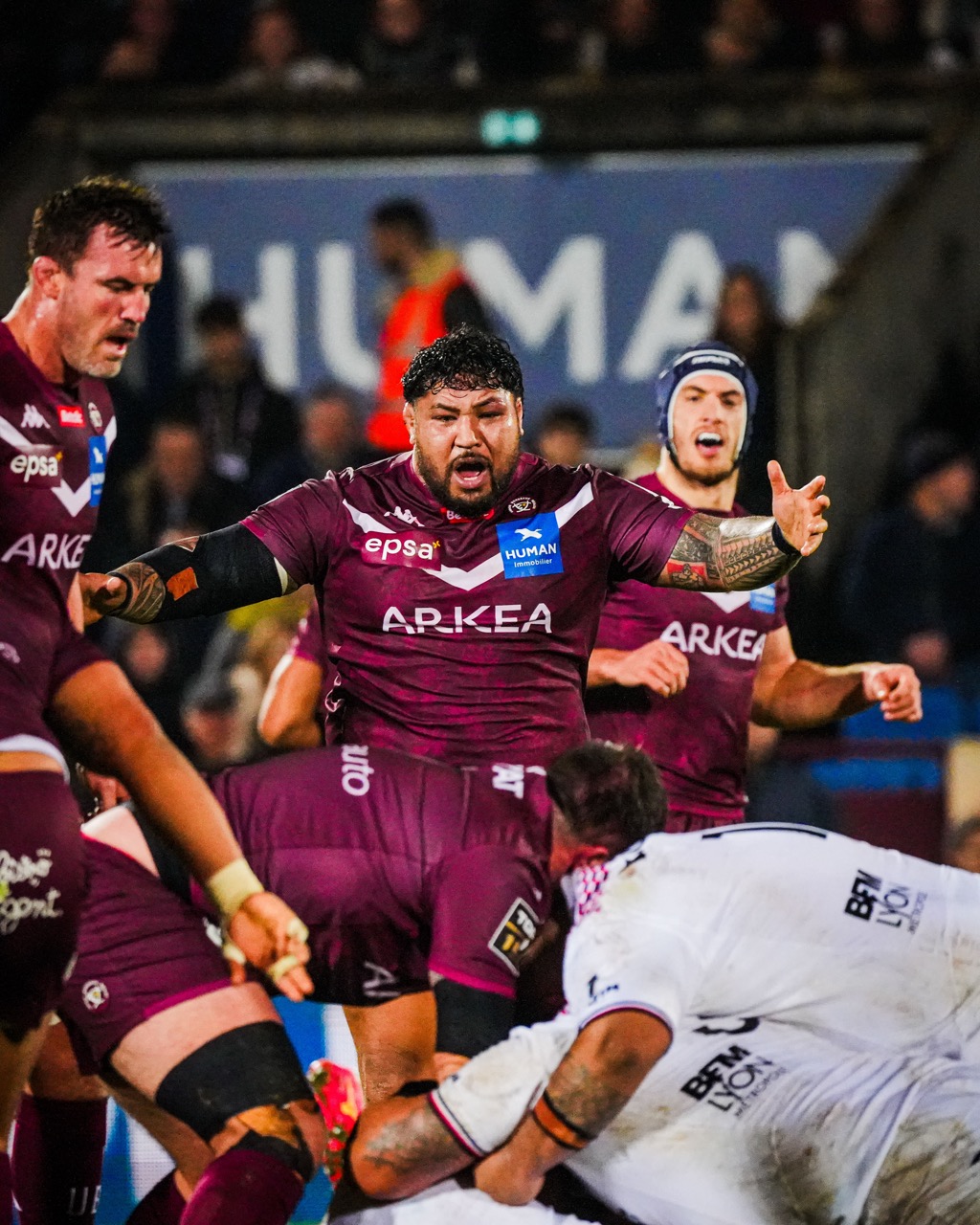 La domination était clairement girondine dans cette seconde période, nos joueurs se montrant dangereux à chaque incursion dans le camp lyonnais. On tentait du jeu, des combinaisons, et la vista de Matteo Garcia quelques minutes plus tard envoyait directement le ballon à la fusée Madosh Tambwe, qui creusait un peu plus l'écart au score ! (64e, 39-10). Il restait moins de 10 minutes de jeu et les lyonnais remettaient la main sur le ballon, mais ce n'était pas du goût de nos joueurs qui récupéraient le cuir pour envoyer Yoram Moefana à l'essai.