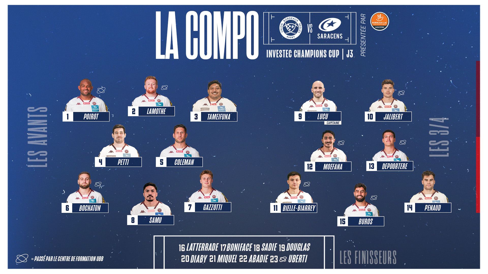 C'est déjà la troisième journée de l'Investec Champions Cup ce dimanche 14 janvier à Chaban ! Yannick Bru et son staff sportif ont dévoilé la composition de l'équipe qui affrontera les Saracens pour ce crunch !