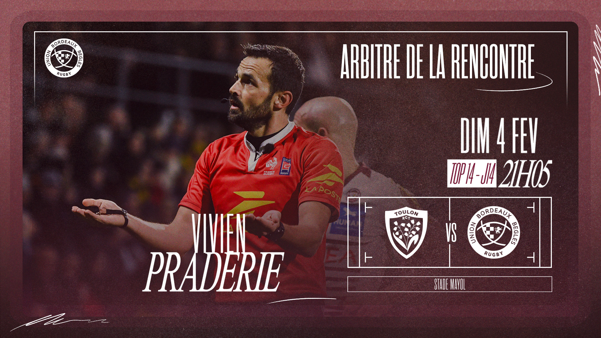 V. Praderie dirigera cette rencontre face à Toulon. Il sera assisté de A. Descottes et R. Duhau sur les touches ainsi que de L. Sclafer à la vidéo.