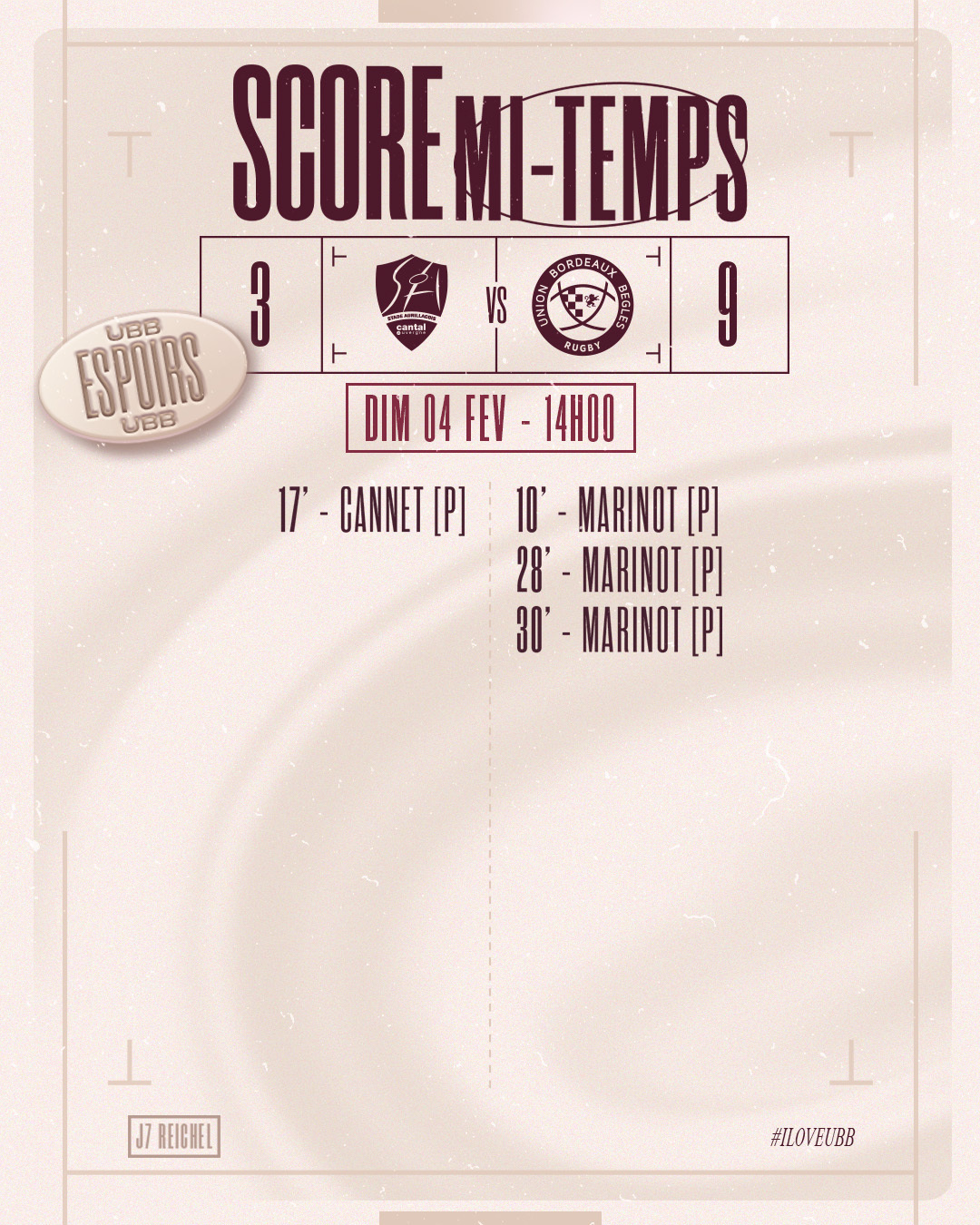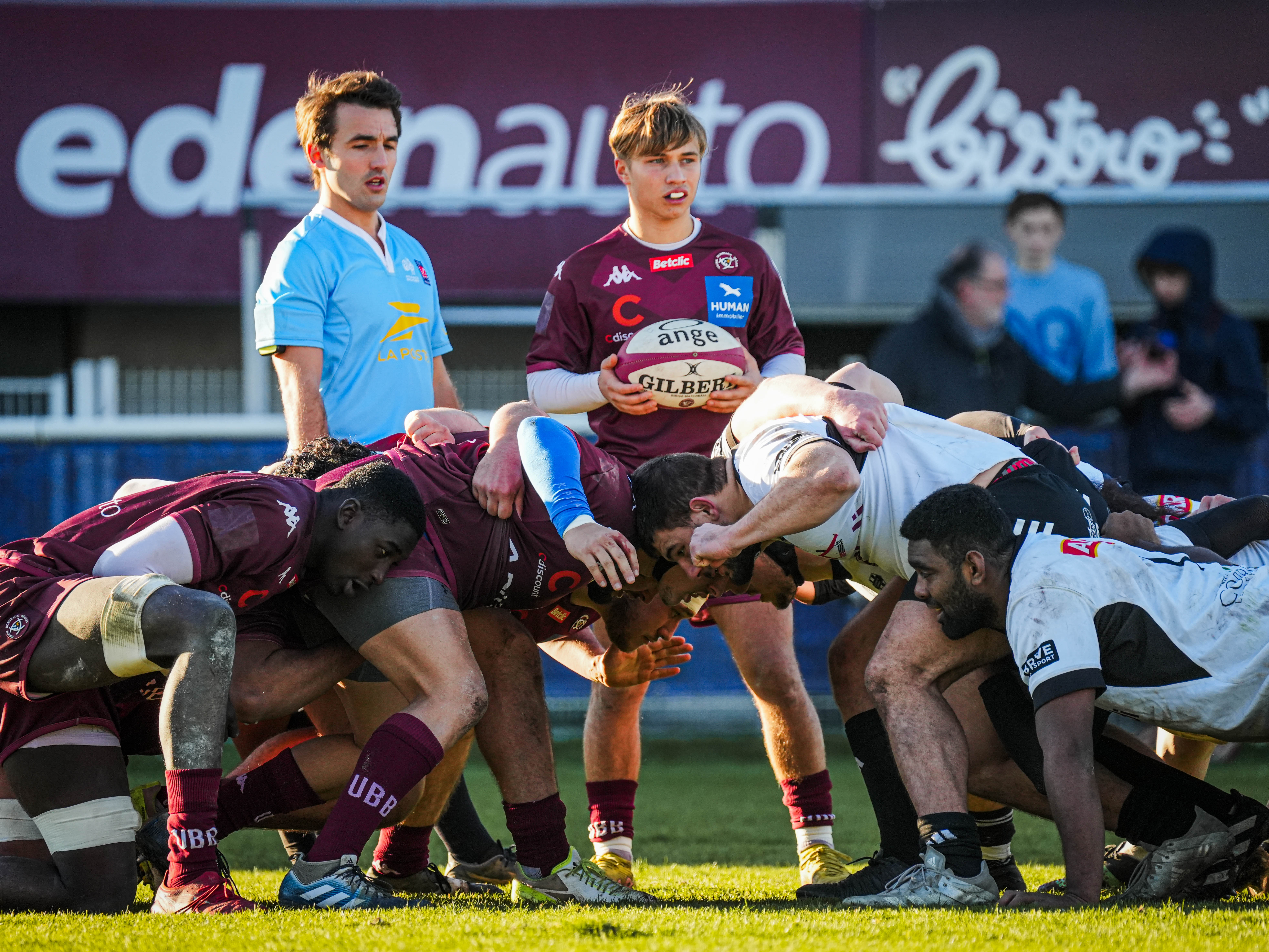 Ils étaient suivis de près par Aurillac qui mettait à la faute nos Espoirs quelques minutes plus tard. Suite à plusieurs mauvaises mêlées les deux piliers, Stanley Muranganw côté aurillacois et Tom Nogueira côté UBB, laissait les deux équipes à 14 contre 14 pour 10 minutes.